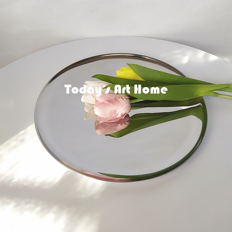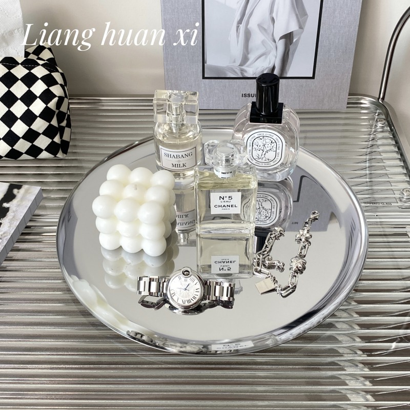 ミラーシルバープレートマルチトレイトレイ韓国雑貨インテリア北欧おしゃれ大きいディスプレイ収納小物入れアクセサリー指輪ピアス鍵化粧品置物アンティークレトロ卓上シンプル丸円ステンレス香水時計