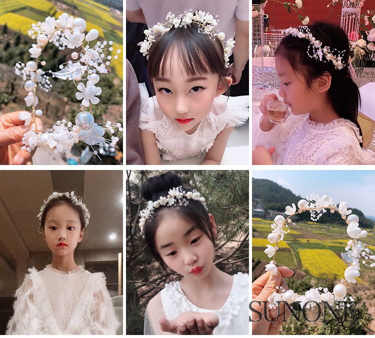 カチューシャ 子供髪飾り 花 リーフ パール 小花モチーフ ウエディング ヘッドドレス フラワーティアラ 女の子用 髪飾り 子供 ピアノ発表会 ヘアアクセサリー お誕生日会