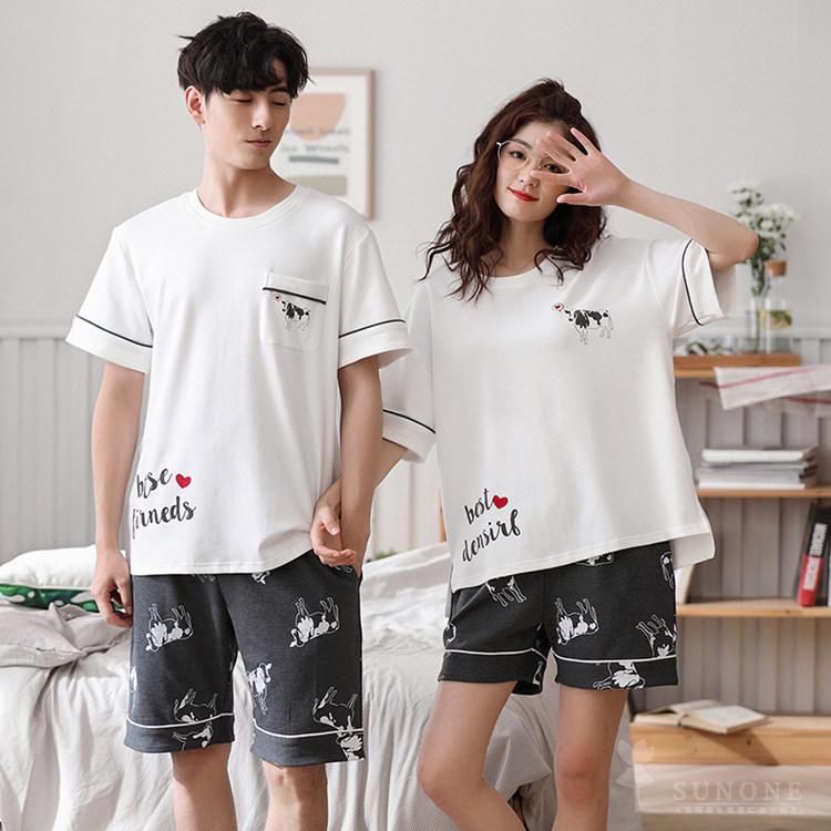 ペアパジャマ カップル 春夏 半袖 メ