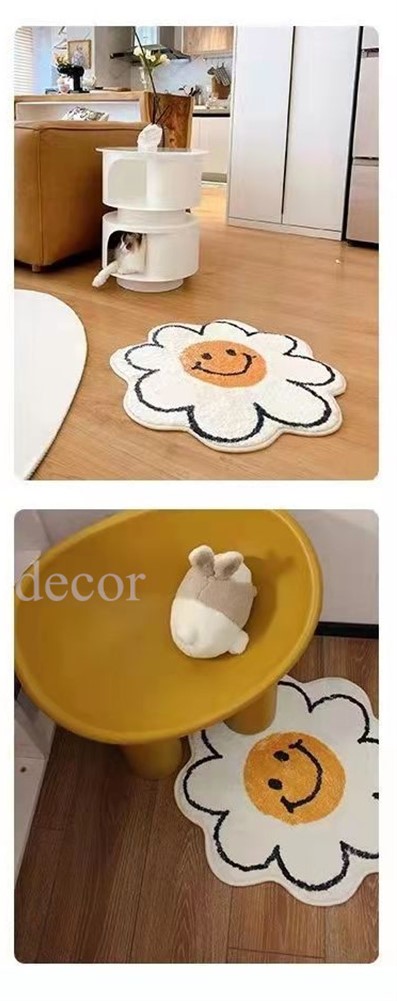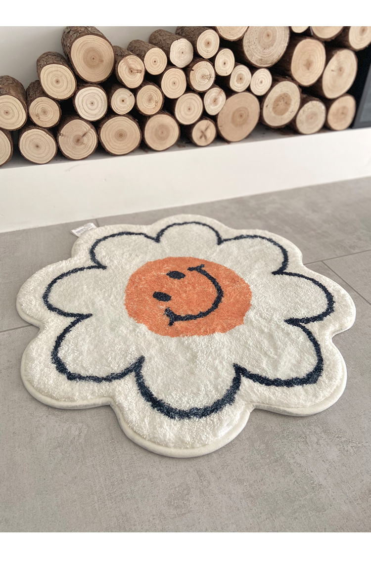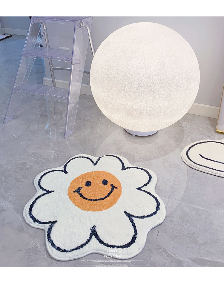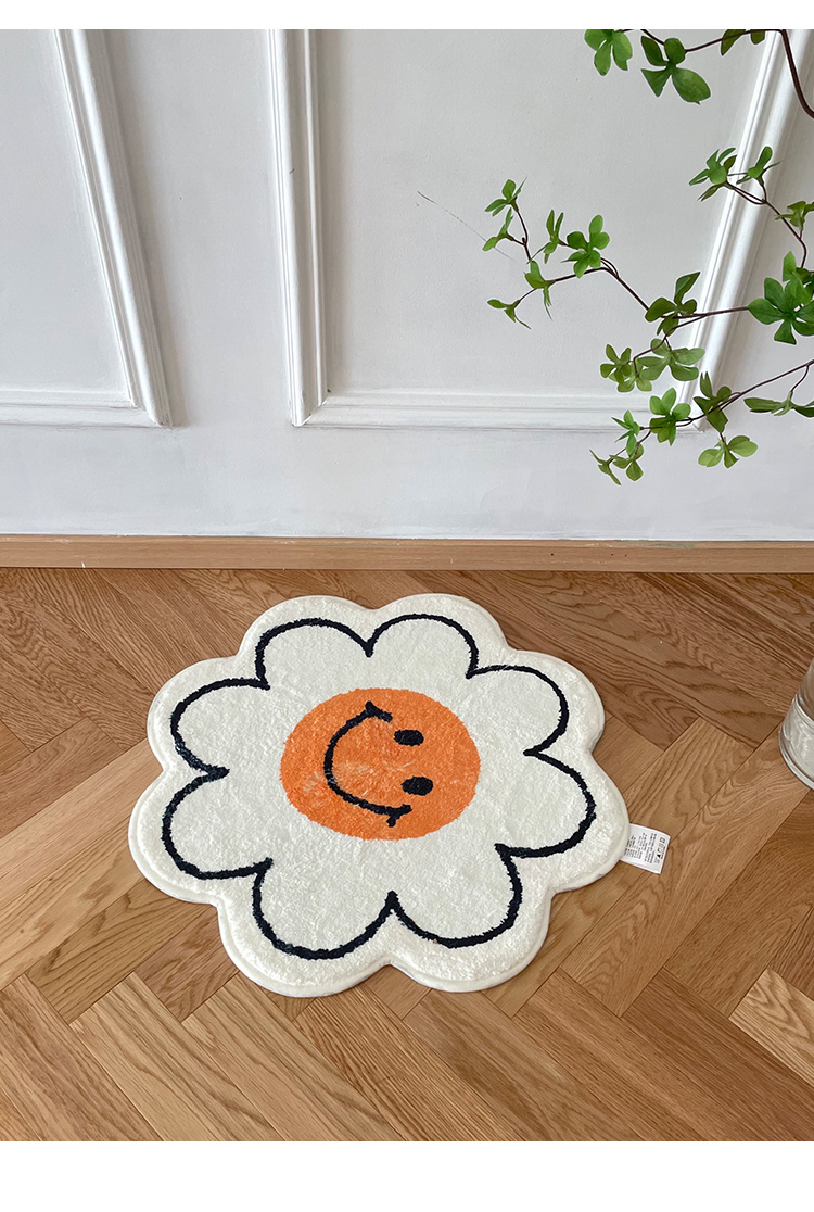 フラワーマルチマット55cm×55cmニコちゃんスマイル花柄花型丸円大きい大きめおしゃれ可愛い韓国雑貨インテリア北欧滑り止めラグカーペット玄関リビング子ども部屋タオル地バスマット柔らかい室内白ホワイト