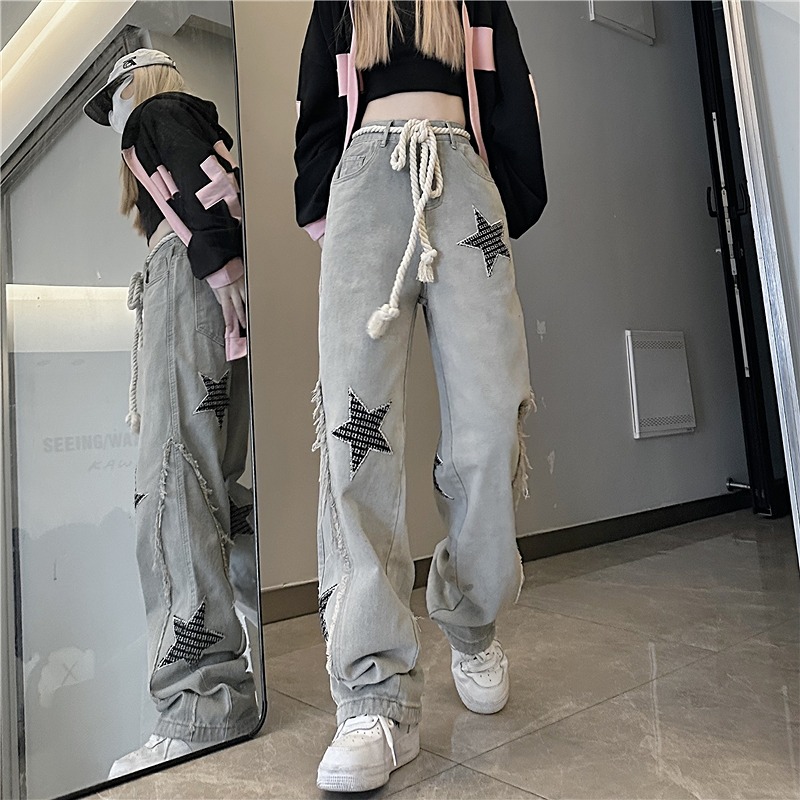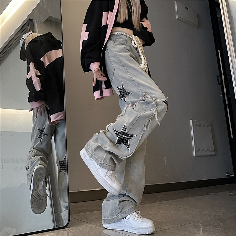 デニムパンツ ビジュー付き