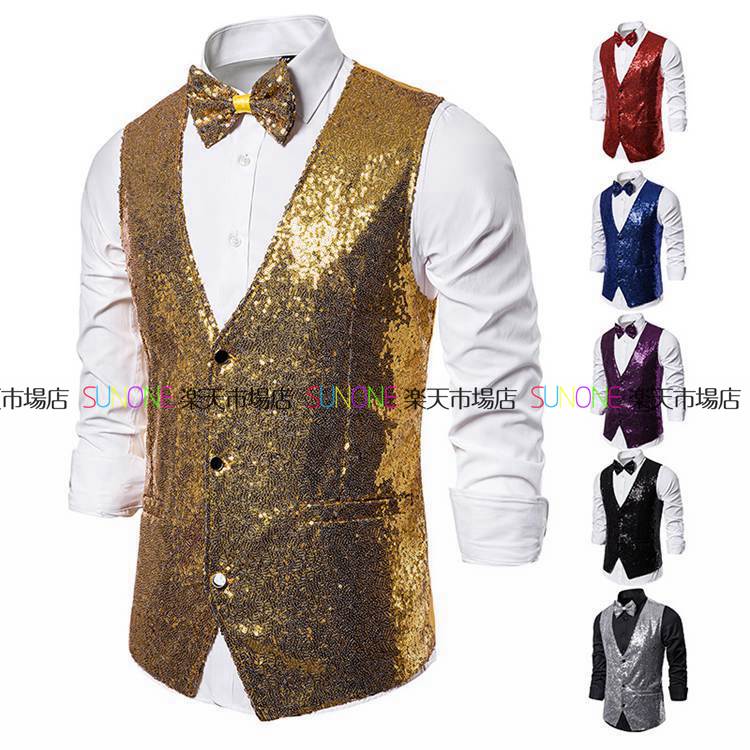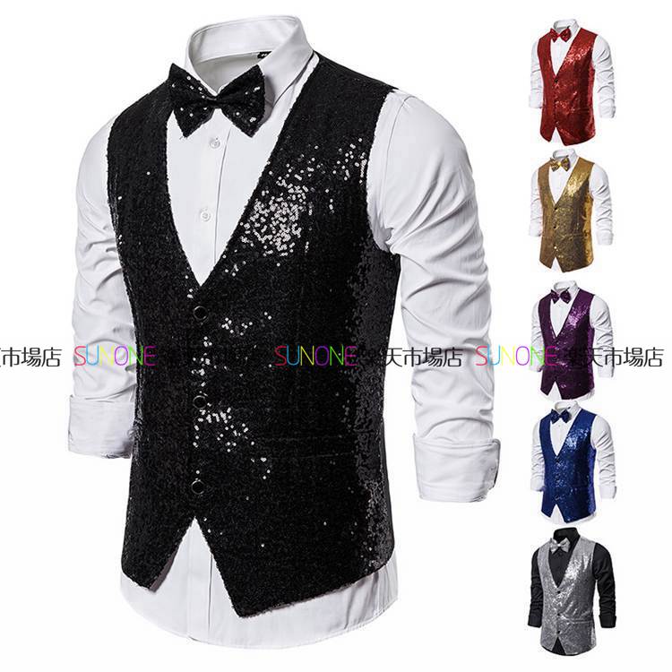スパンコールベストメンズ 舞台演出用ベスト フォーマルベスト メンズベスト ジレベスト 司会者用ベスト ダンス衣装 忘年会 新年会 カラオケ マジック ジャズダンス ステージ衣装