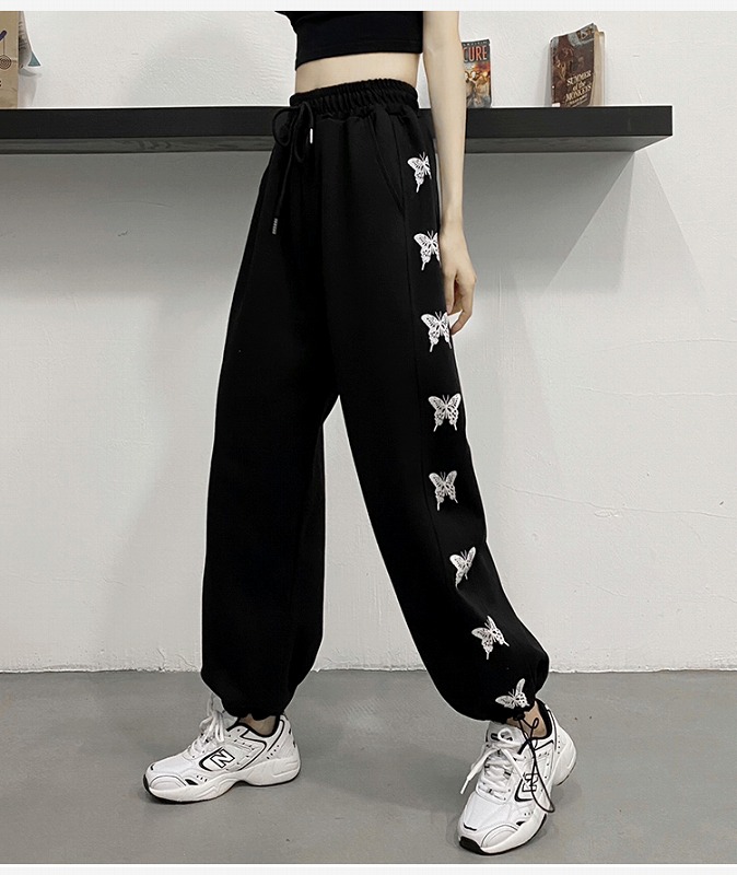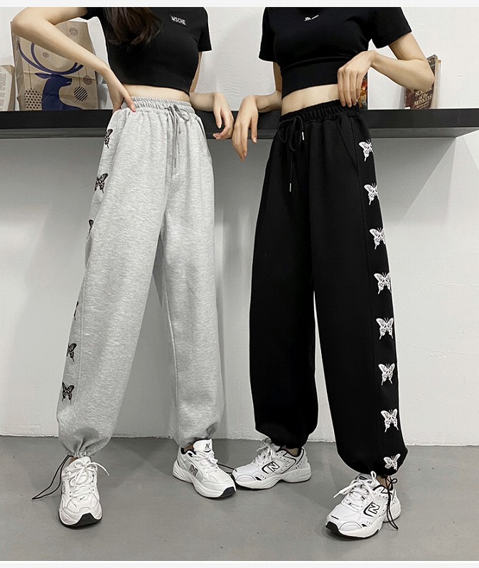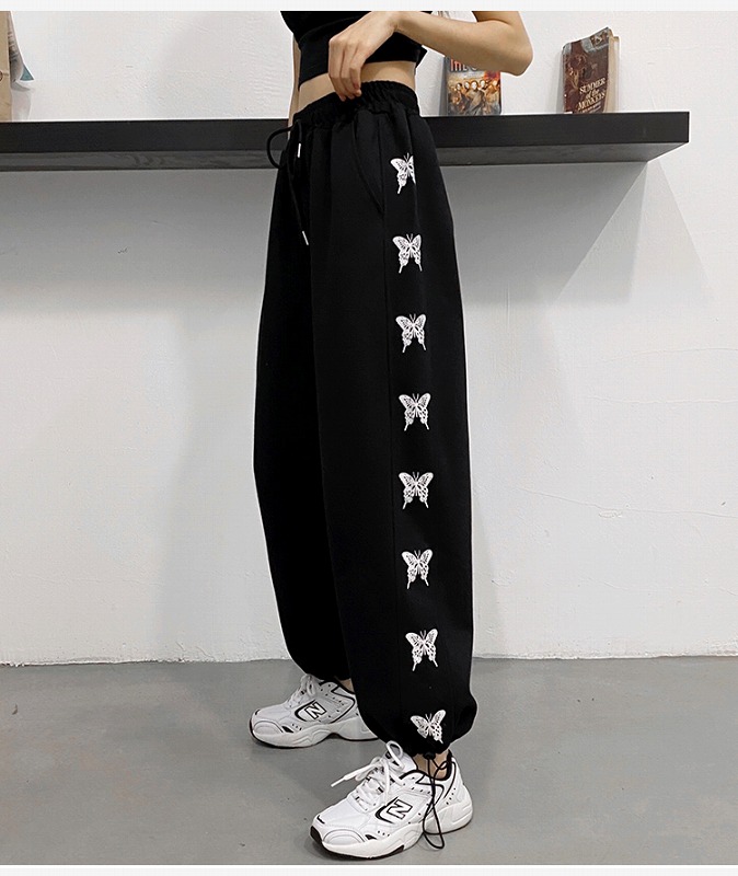 パンツ ズボン 切り替え 体型カバー ヴィンテージ風 レトロ調 HIPHOP ヒップホップ 原宿系ファッション 韓国風 ダンス 衣装 ダンサー ヒップホップ HIPHOP 個性 奇抜 かわいい 青文字