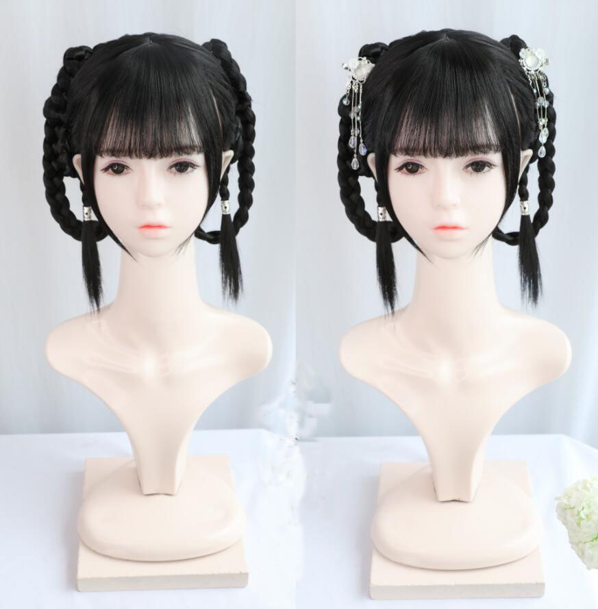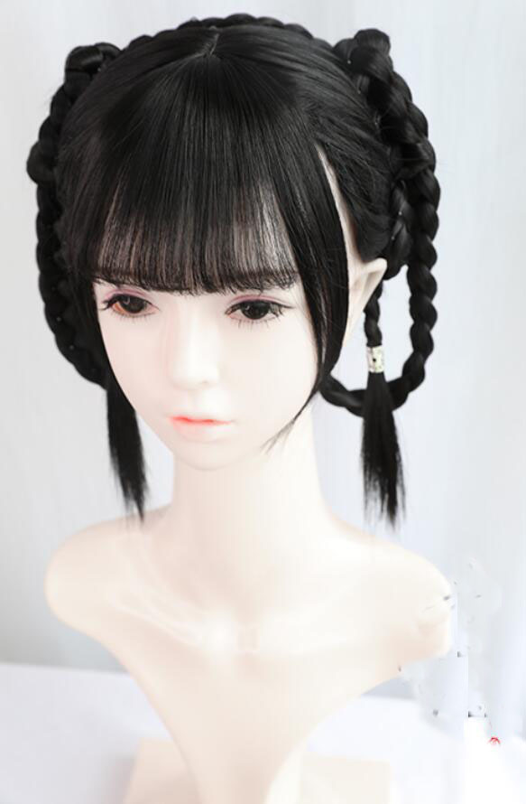 コスプレウイッグ ウイッグ かつら フルウイッグ 頭にかぶる 文化祭 学園祭 ハロウィン イベント 仮装 変装 ウイッグ レディース 三つ編 前髪あり ロリータ服用ウイッグ