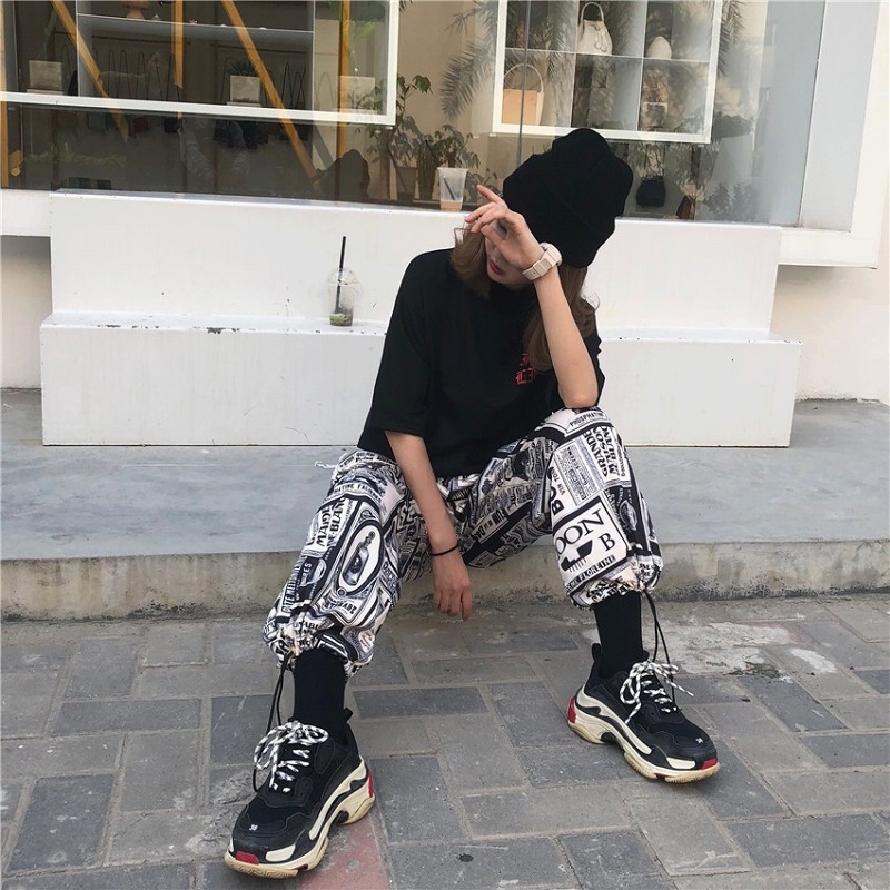 全3色 パンツ ズボン ガウチョパンツ ワイド バギーパンツ スリット 切り替え バイカラー 配色 体型カバー 大きいサイズあり 原宿系ファッション 韓国風 ダンス 衣装 ダンサー ヒップホップ HI