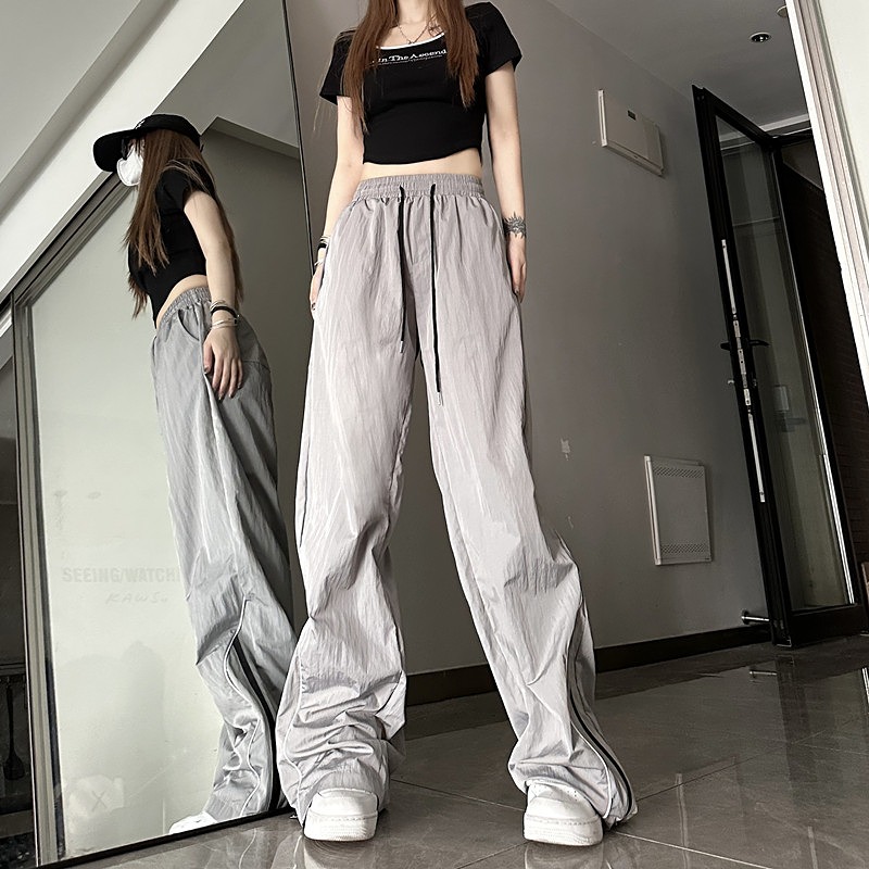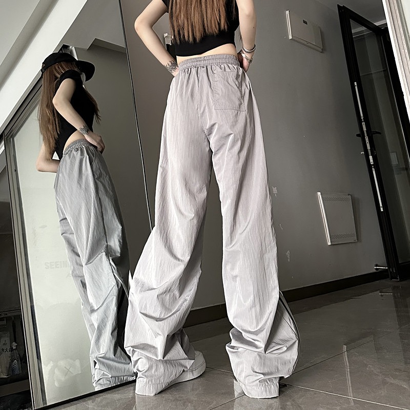 全3色 パンツ ズボン ガウチョパンツ ワイド バギーパンツ スリット 切り替え バイカラー 配色 体型カバー 大きいサイズあり 原宿系ファッション 韓国風 ダンス 衣装 ダンサー ヒップホップ HI