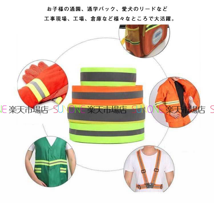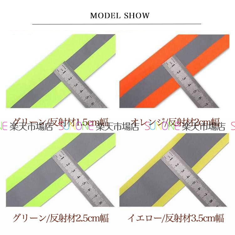 サイズ: グリーン/反射材1.5cm幅 オレンジ/反射材2cm幅 グリーン/反射材2.5cm幅 イエロー/反射材3.5cm幅