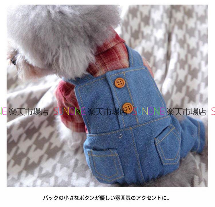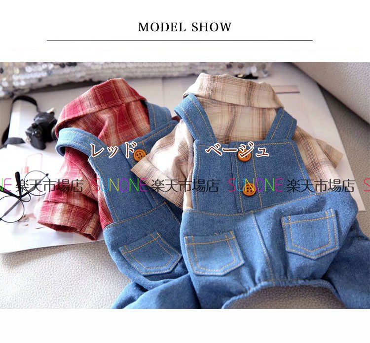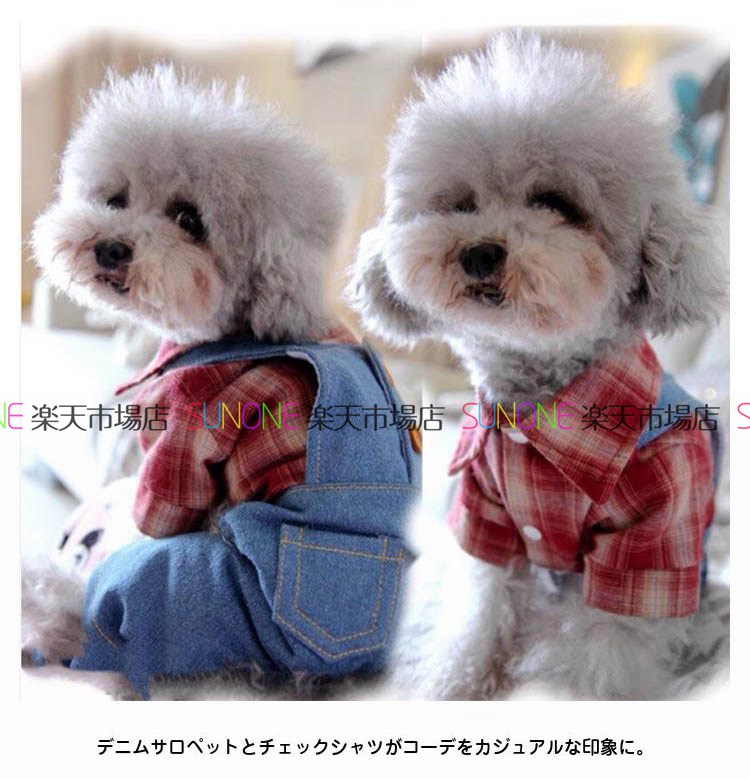 ドッグウエア キャットウエア ペット服 小型犬 中型犬 犬 猫 お散歩 お出掛け お散歩 お出掛け チェック柄 サロペット ペット服 デニム 重ね着風