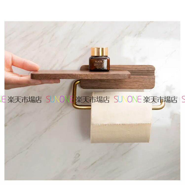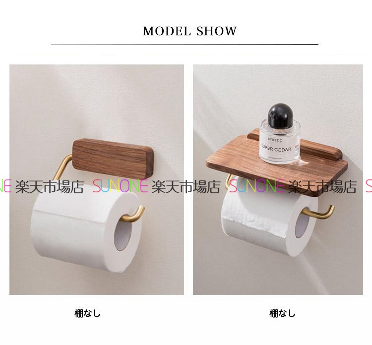 トイレットペーパーホルダー 木製 棚付