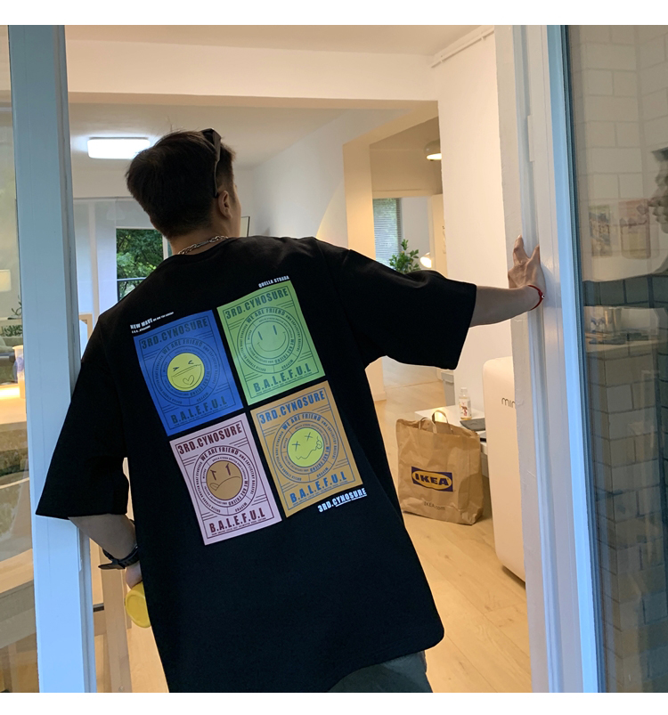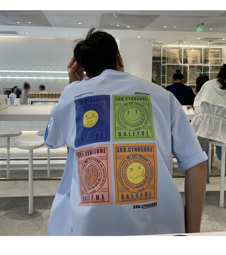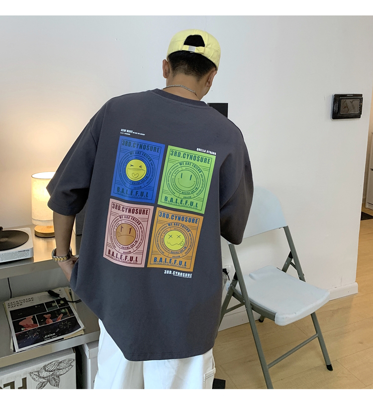 スマイルTシャツ4色半袖トップスカット