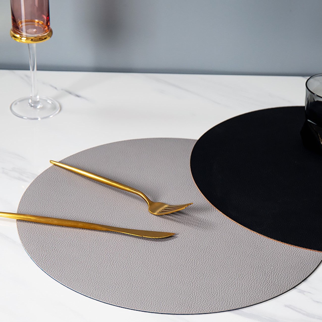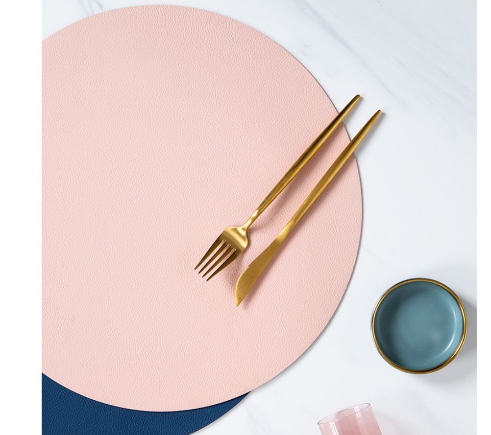 2点セット4色ランチョンマット丸円韓国雑貨インテリアおしゃれ防水アンティークランチマット食卓マットテーブルマットテーブルウェア白ホワイトピンクブラウンオレンジグレー無地シンプル北欧撥水可愛い大きい
