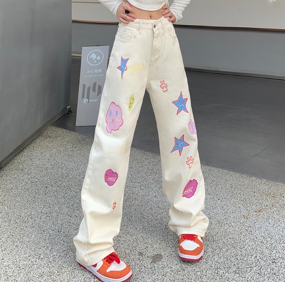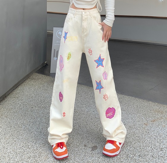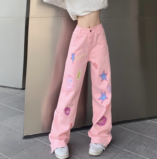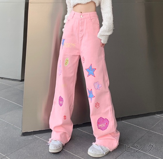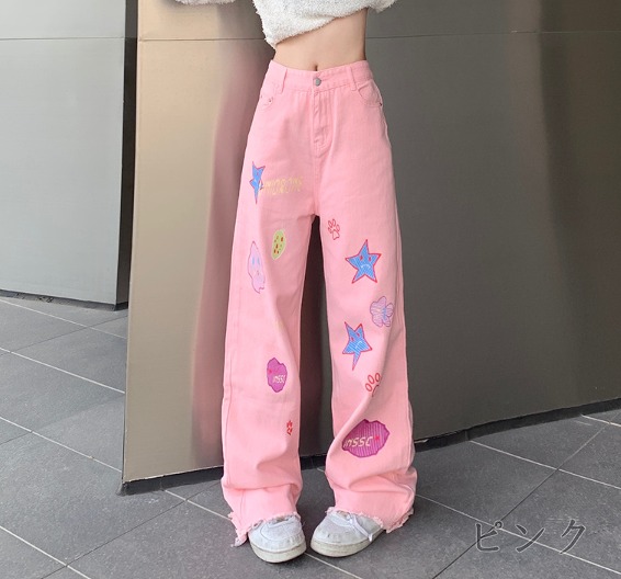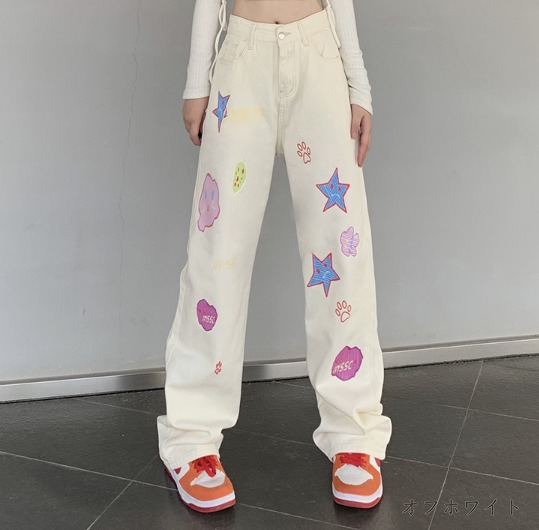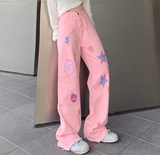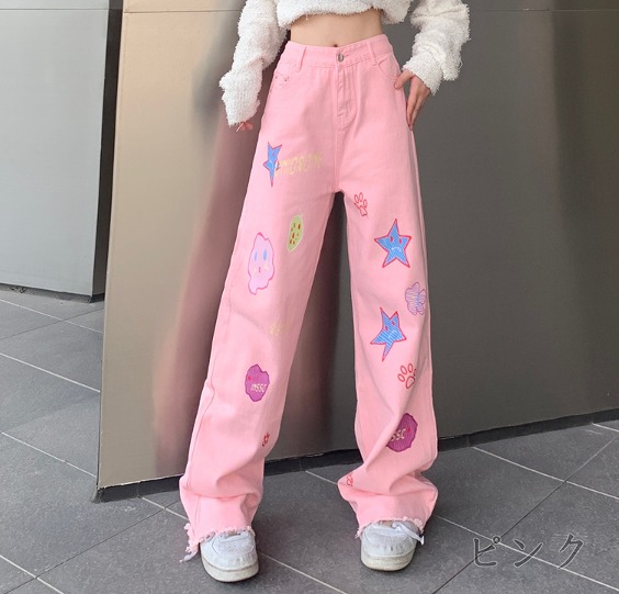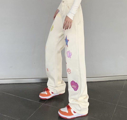 デニムパンツ ビジュー付き