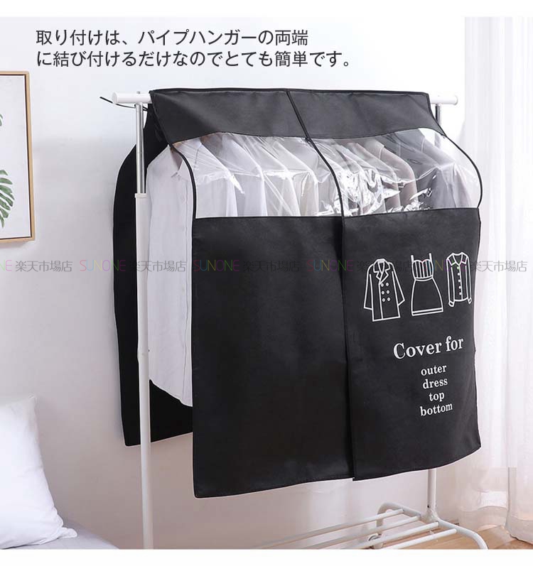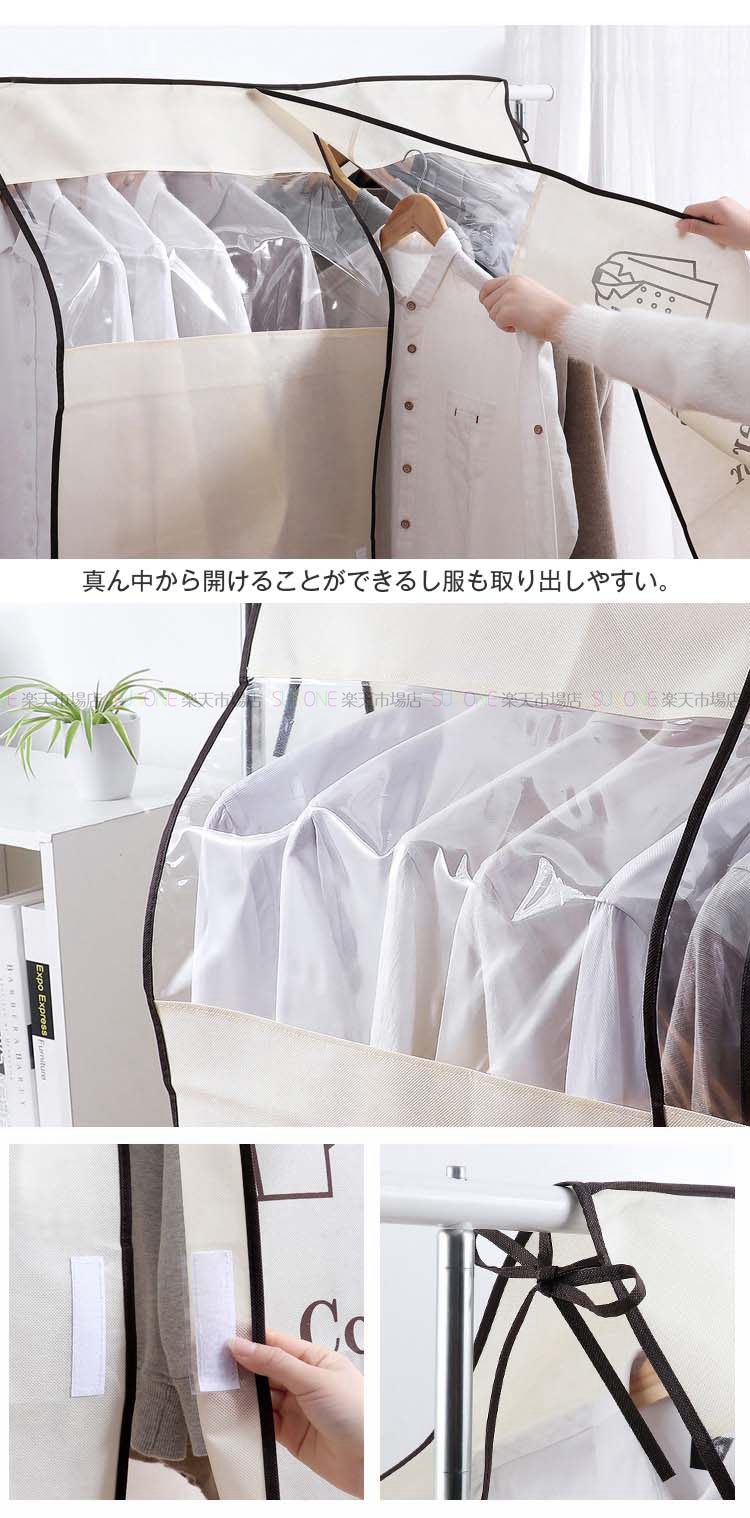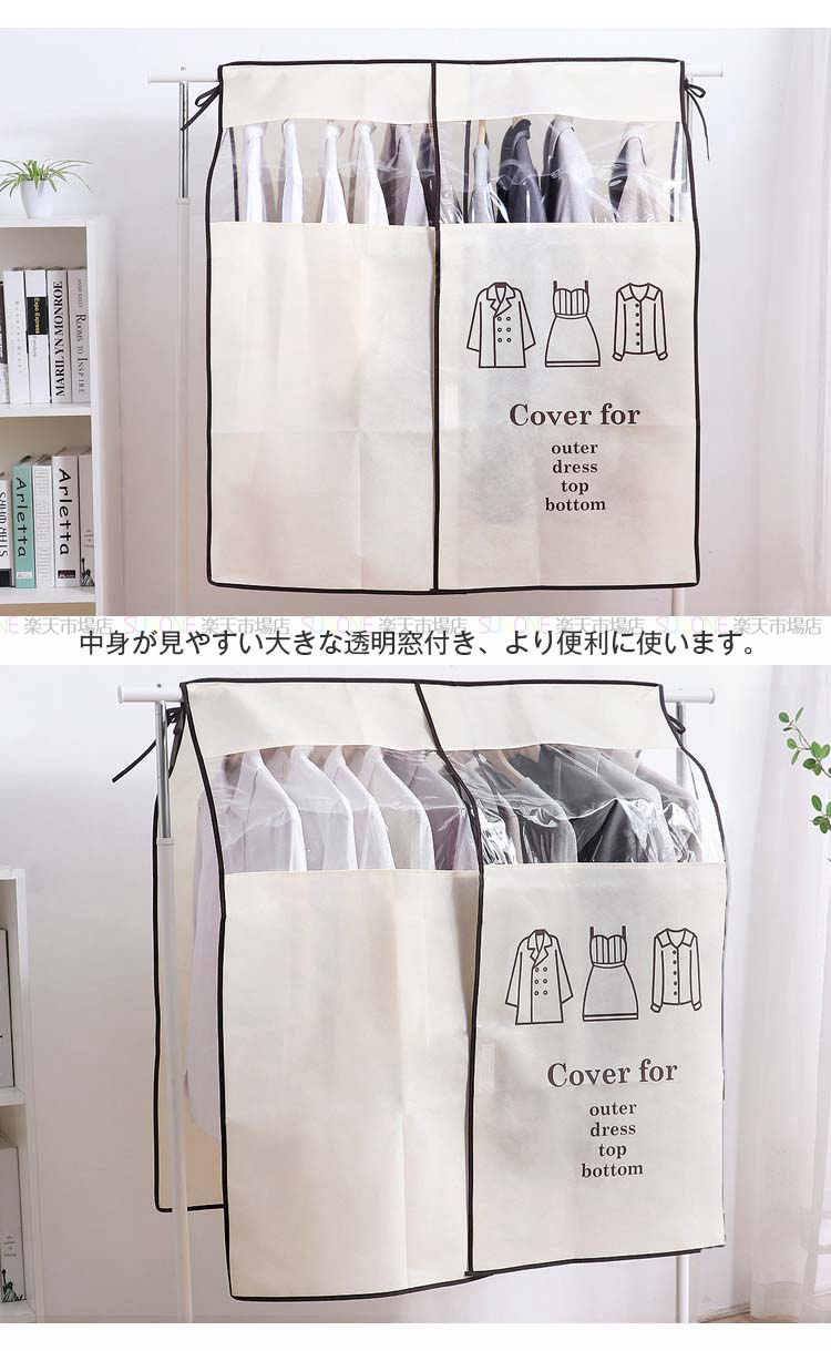 ハンガーラックカバー 汚れ防止 衣類収納カバー 防塵 通気 通気性 防虫 防湿 防カビ 家ホコリ 透明窓 取付簡単 不織布シンプル