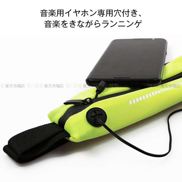 ランニング ポーチ ウエストポーチ ジョギングポーチ 軽量 小型 光反射素材 イヤホンホール付き 伸縮性 防水 防汗 スマホ マラソン ボディバッグ
