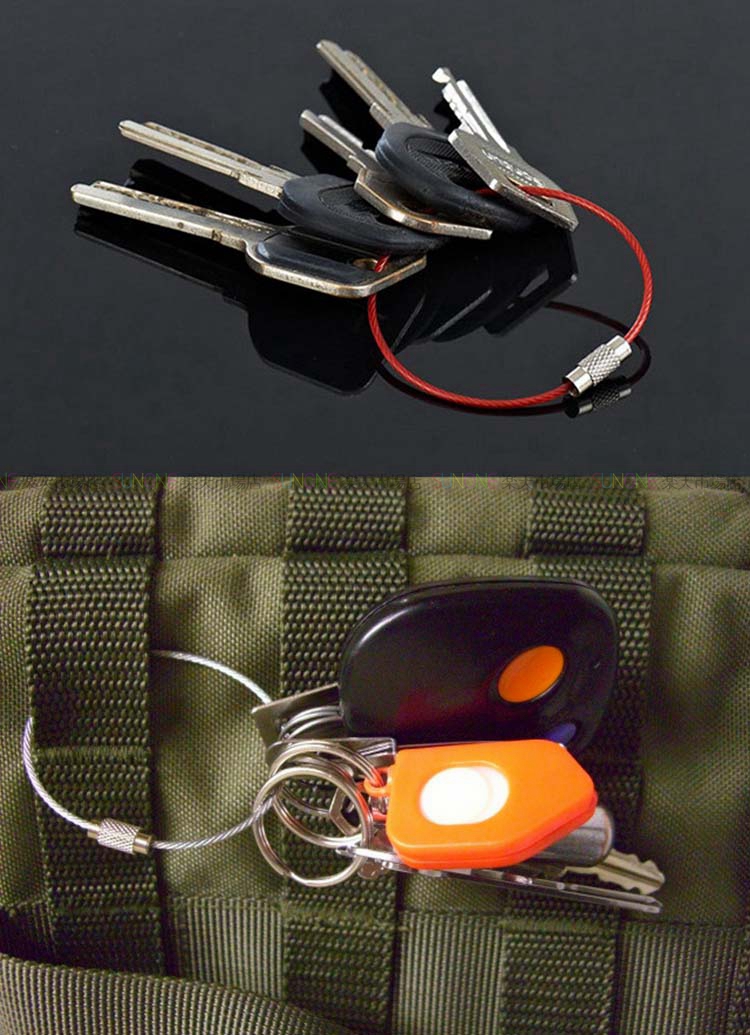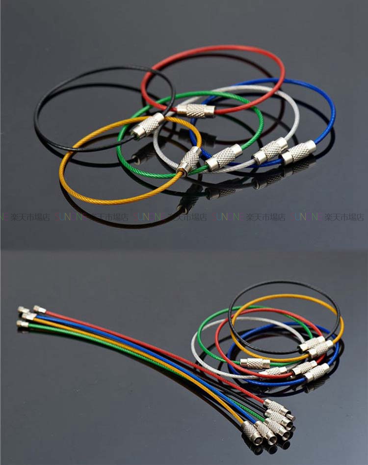 ワイヤーキーホルダー ステンレス製 ワイヤーキーリング ワイヤーリング カードリング ロックワイヤー キーチェーン アクセサリー ネジ式 パーツ 金具 7本セット キーチェーン