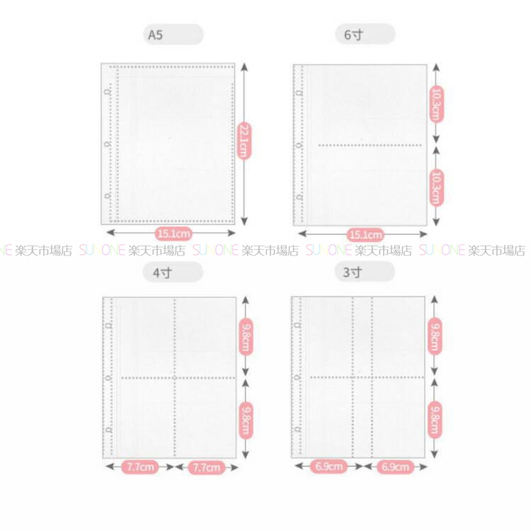 カラー: 3寸+4寸(50ページ) 3寸+6寸(50ページ) 3寸+A5寸(50ページ) 4寸+6寸(50ページ) 4寸+A5寸(50ページ)