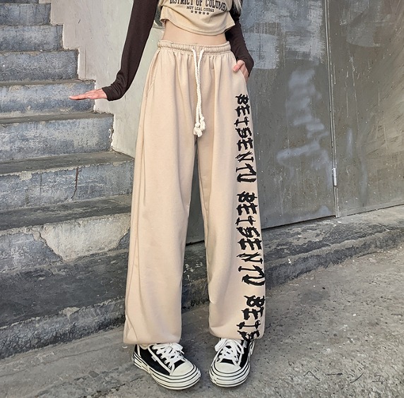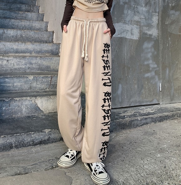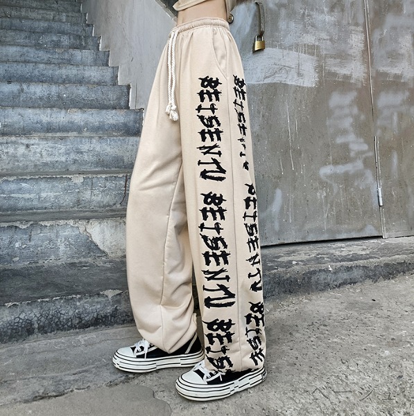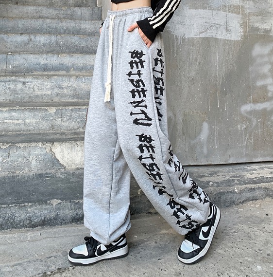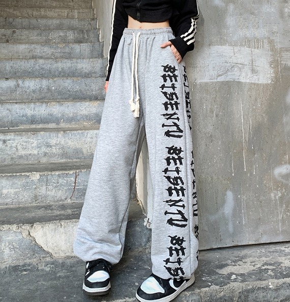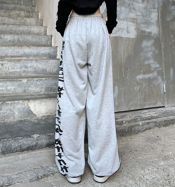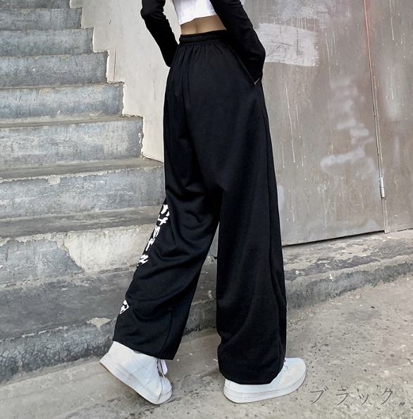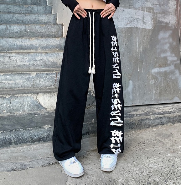 全2色 パンツ ズボン ウエストゴム 切り替え 体型カバー ヴィンテージ風 レトロ調 原宿系ファッション 韓国風 ダンス 衣装 ダンサー ヒップホップ HIPHOP 個性 奇抜 かわいい 青文字系 ボ