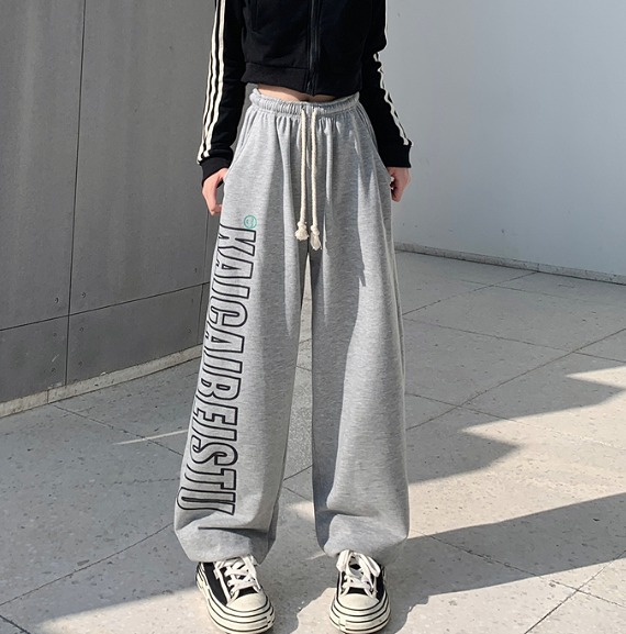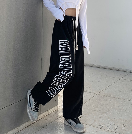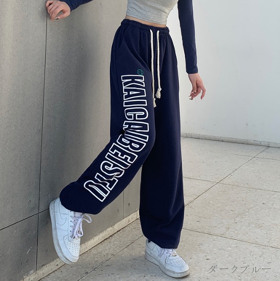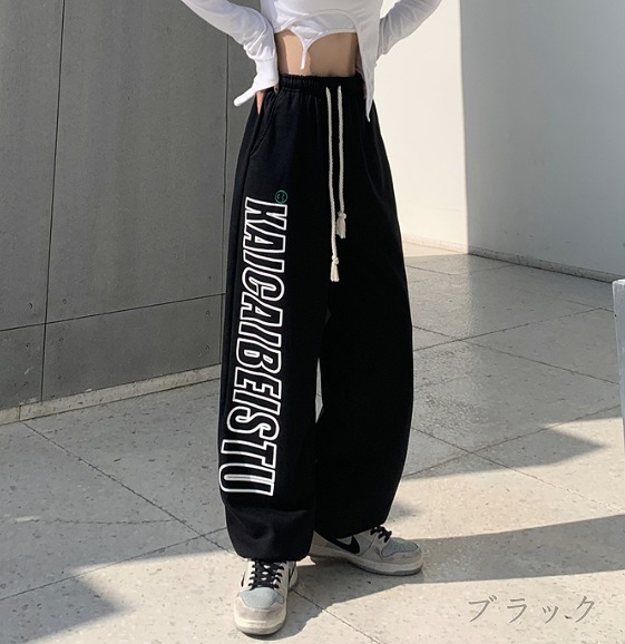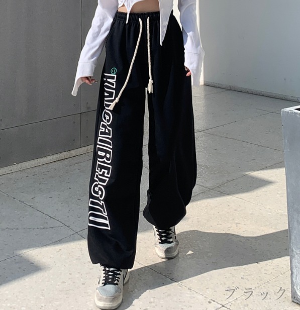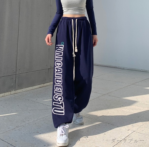 全2色 パンツ ズボン ウエストゴム 切り替え 体型カバー ヴィンテージ風 レトロ調 原宿系ファッション 韓国風 ダンス 衣装 ダンサー ヒップホップ HIPHOP 個性 奇抜 かわいい 青文字系 ボ