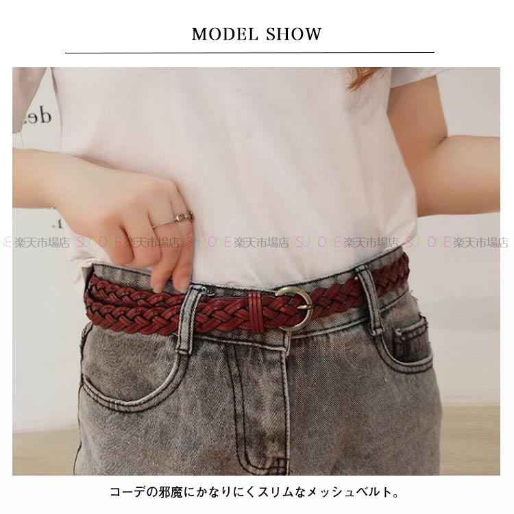 レディース ファッションベルト 2本セット メッシュベルト 大人 ストレッチベルト 編み込み 伸縮性 調節不要 穴あけ不要 しっかりフィット 合皮