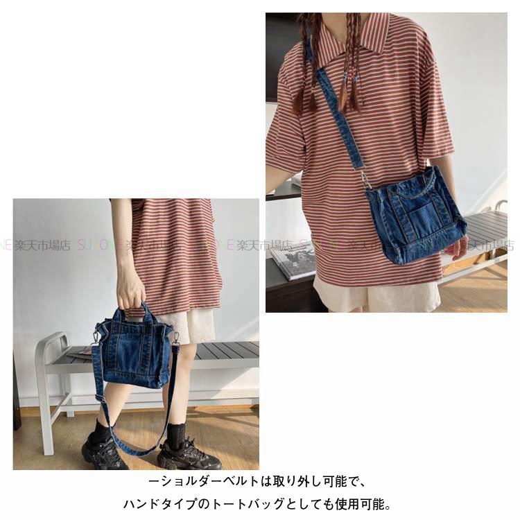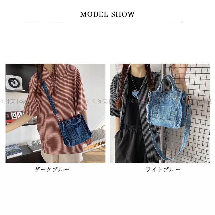 デニムバッグ デニム 2WAYバッグ 斜めかけバッグ ショルダーバッグ トートバッグ レディース ポケット 肩掛け 鞄 可愛い 手提げ 通勤