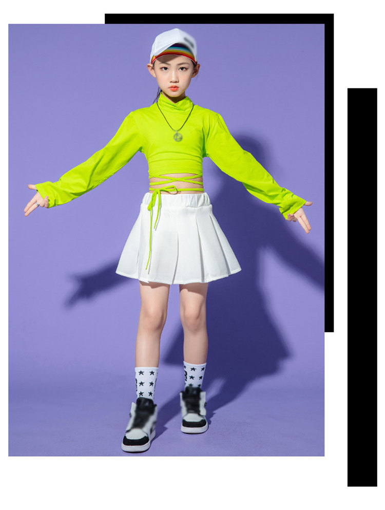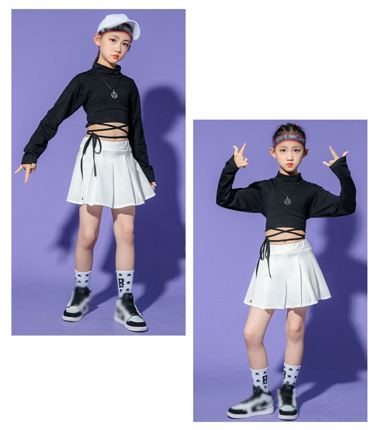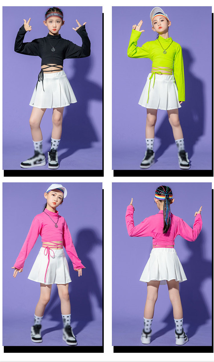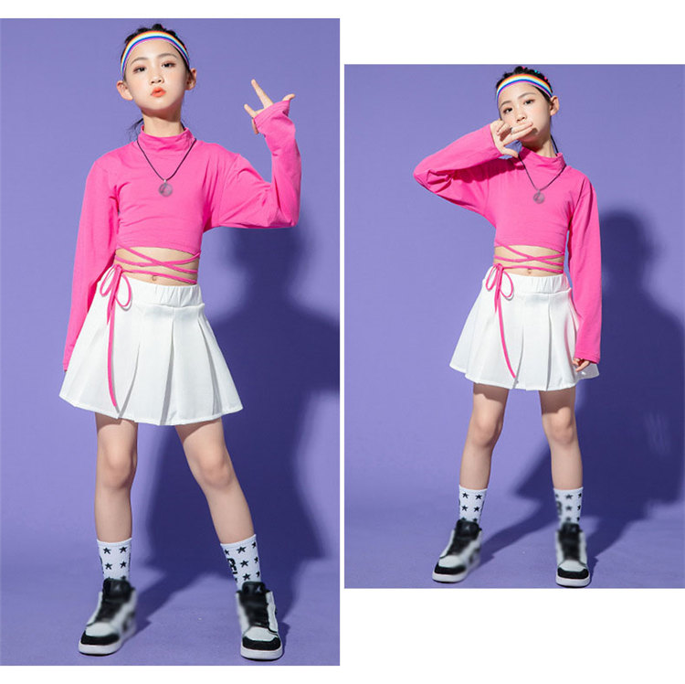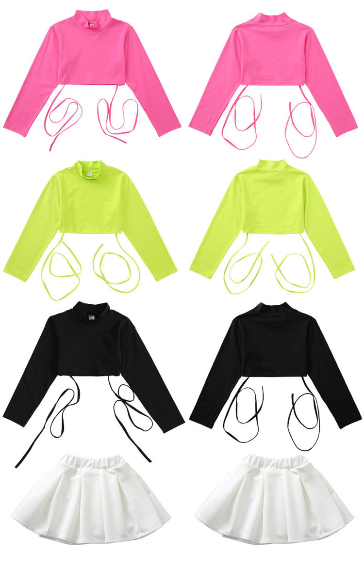 チアガール 女の子 ダンス衣装 キッズ セットアップ トップス へそ出し スカートヒップホップ 長袖 キッズダンス衣装 上下セット 発表会 練習着 チア ダンス 応援団 体育祭 文化祭