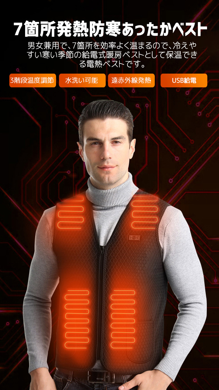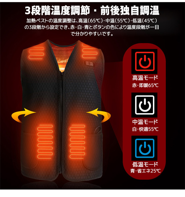 電熱ベスト 3段温度調整 ヒーターベスト ヒートジャケット 通勤通学 防寒ウエア 防寒チョッキジャケット 洗える 大きいサイズ 電熱コート 発熱ベスト 屋外作業 男女兼用 加熱ベスト