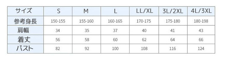 サイズ: M L LL/XL 2XL 3XL 4XL