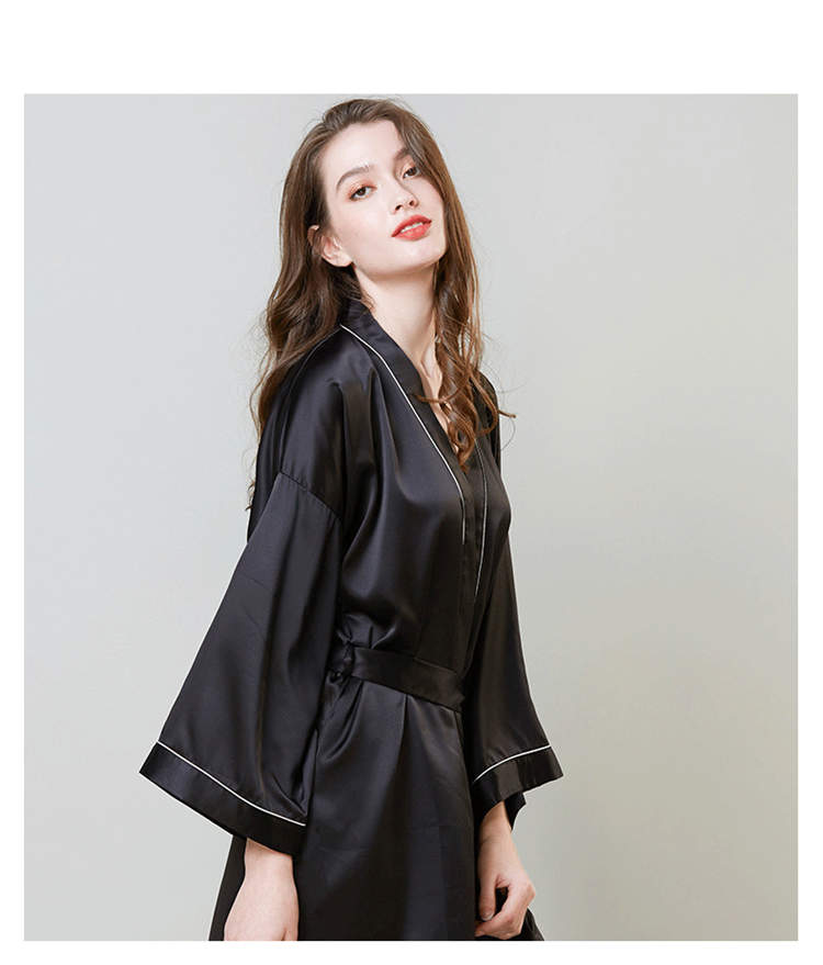 バスローブ レディース 前開き バスローブ 薄手 ルームウェア ナイトウエア 七分袖 膝丈 夏 大きいサイズ 女性用 シンプル ホテル 旅館 Vネック