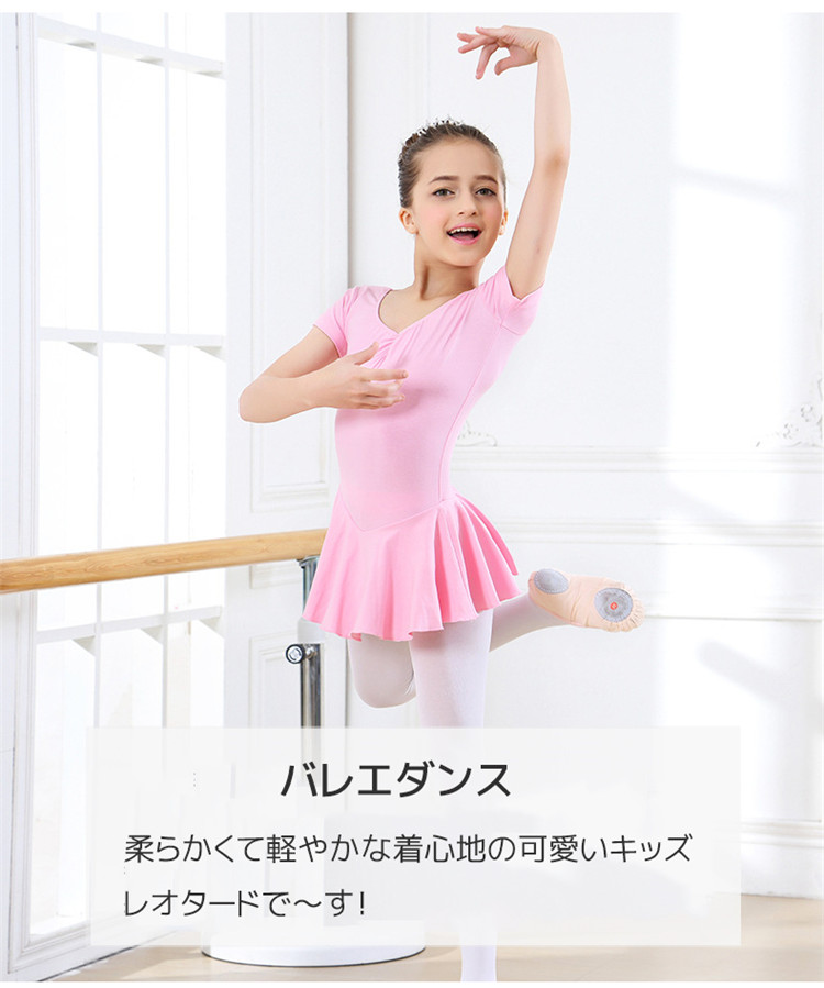 バレエレオタード 子供用 半袖 キッズ バレエ衣装 女の子 キッズウェア 体操 ダンス 練習服 ステージ衣装 シンプル ワンピース レッスン着 女の子 可愛い ダンス服