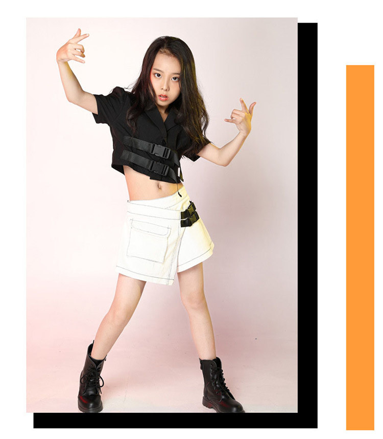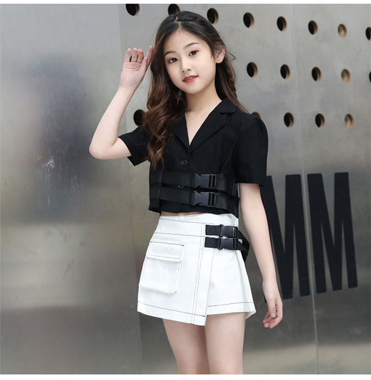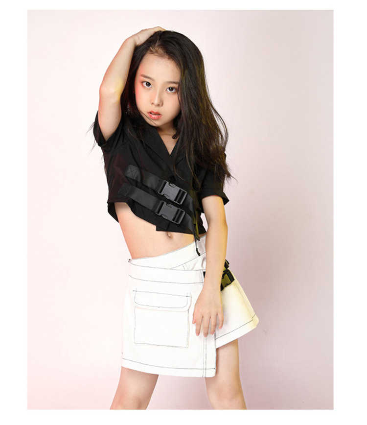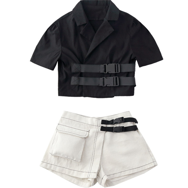 ダンス 衣装 キッズ セットアップ 2点セット 女の子 おしゃれ 可愛い キッズ ガールズ ジュニア パンツ キッズ スカート風 チアダンス ジャズ バックル飾り