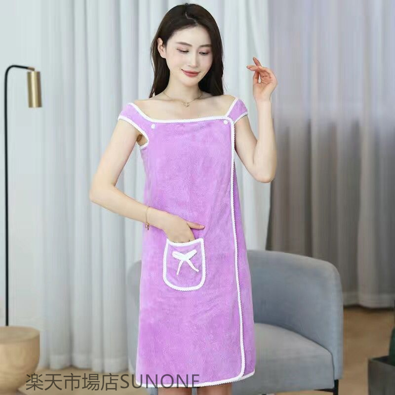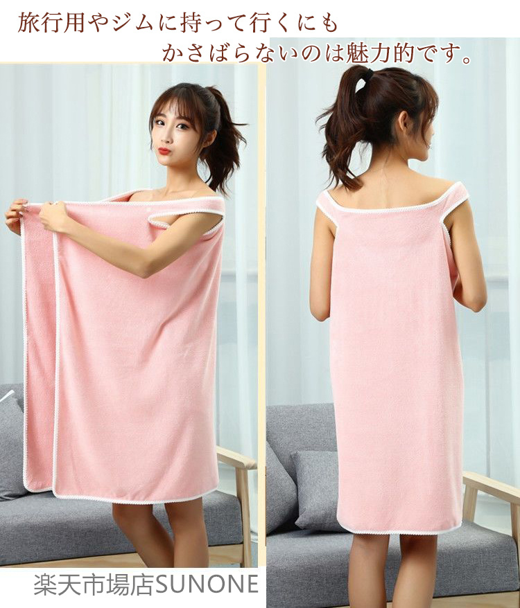 バスローブ レディース ワンピース風 乾きやすい 薄手 大判バスタオル デイリータオル 大判 ふわふわ もこもこ ポケット付き バスタオル 新生活 バス