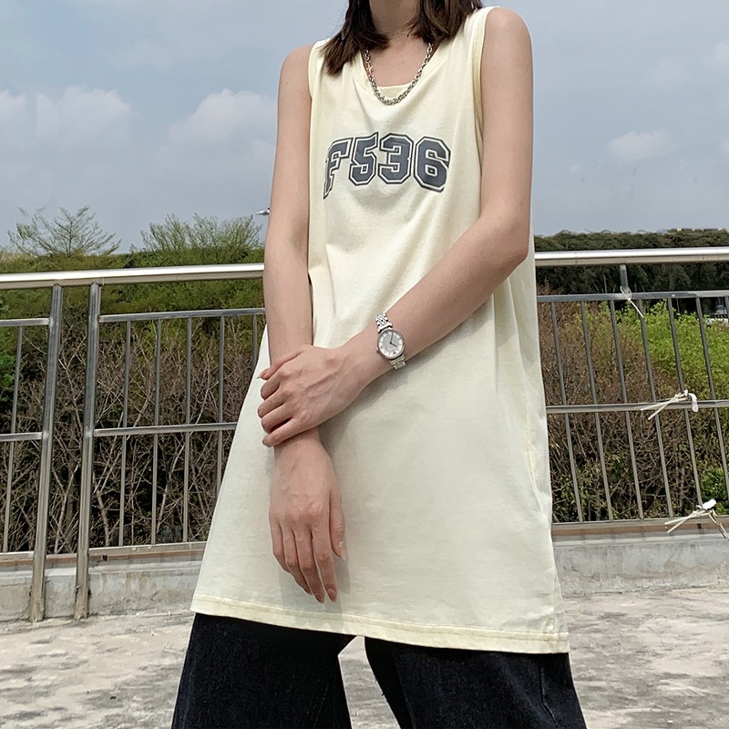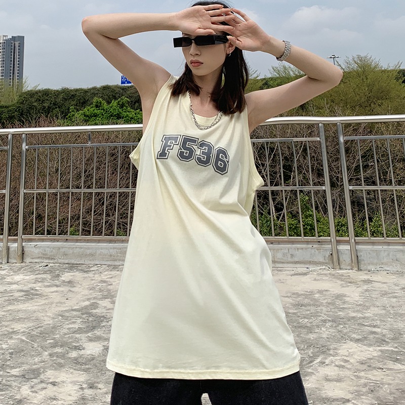 タンクトップレディースTシャツノースリーブUネックロゴプリント