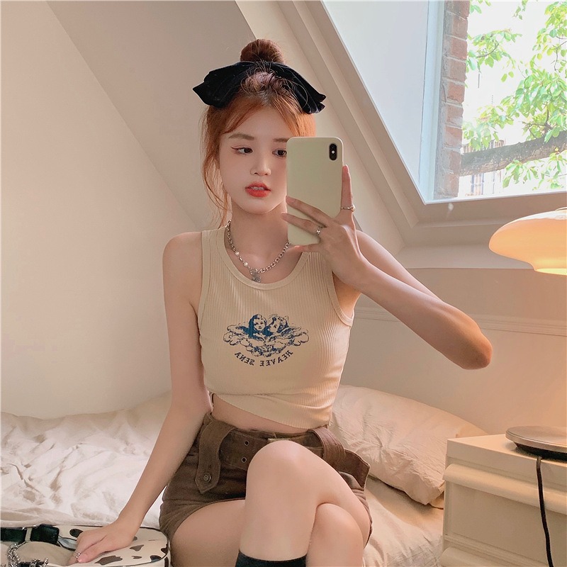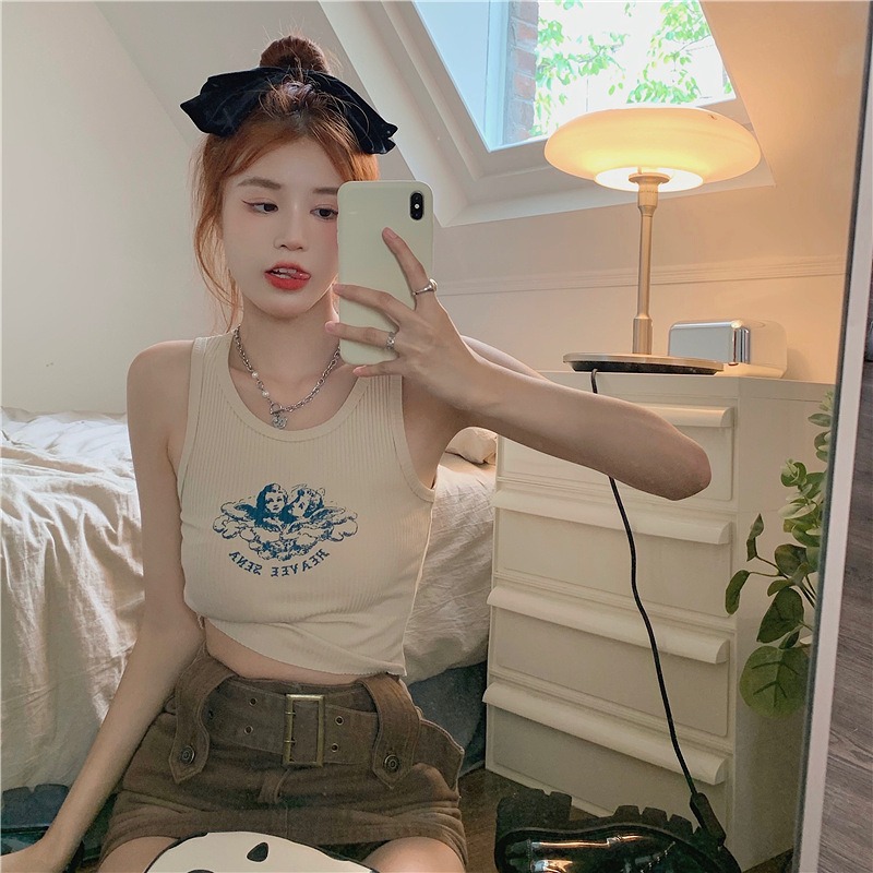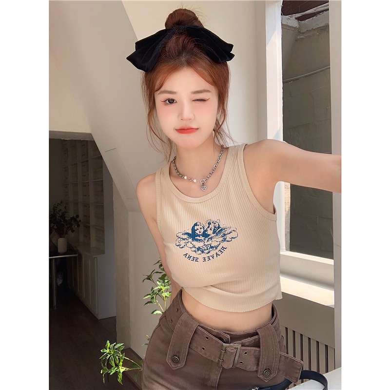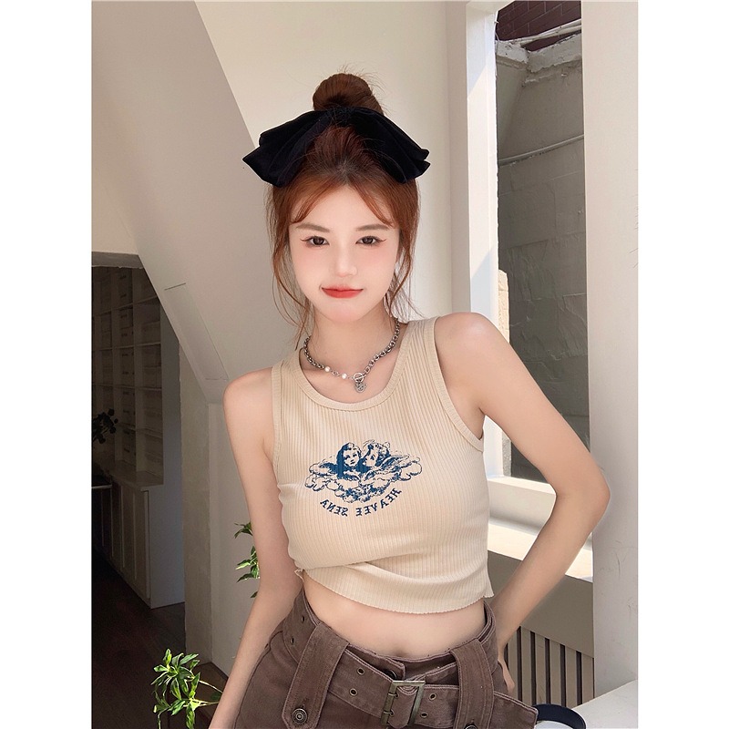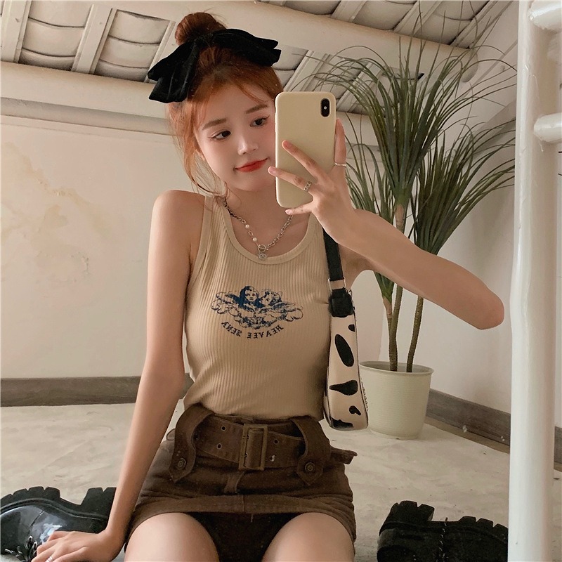 タンクトップレディースTシャツノースリーブUネックロゴプリント
