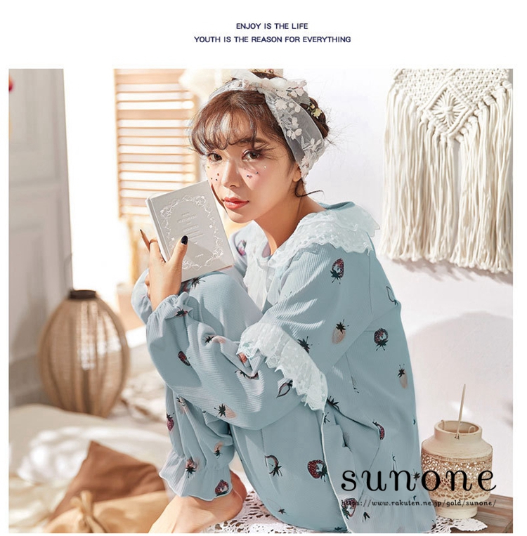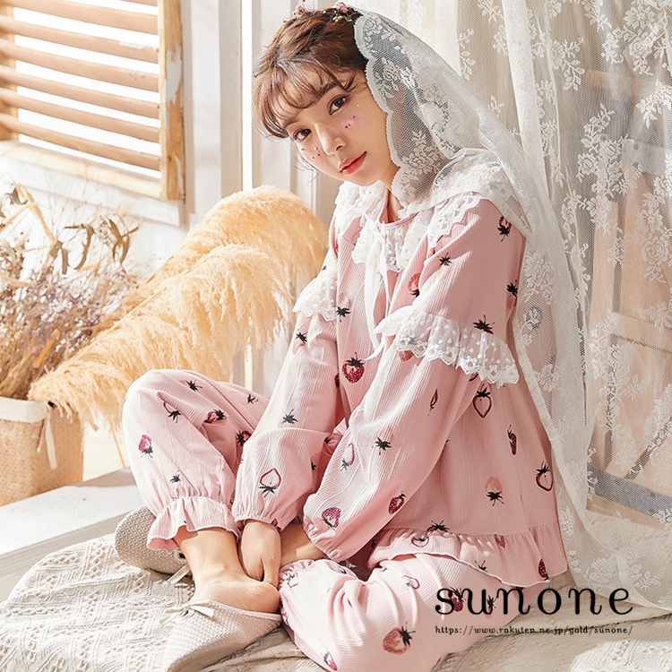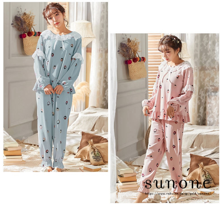 パジャマ レディース 春 夏 長袖 可愛い ルームウェア イチゴ 上下セット ロングパンツ 部屋着 寝巻き 女性パジャマ M L XL
