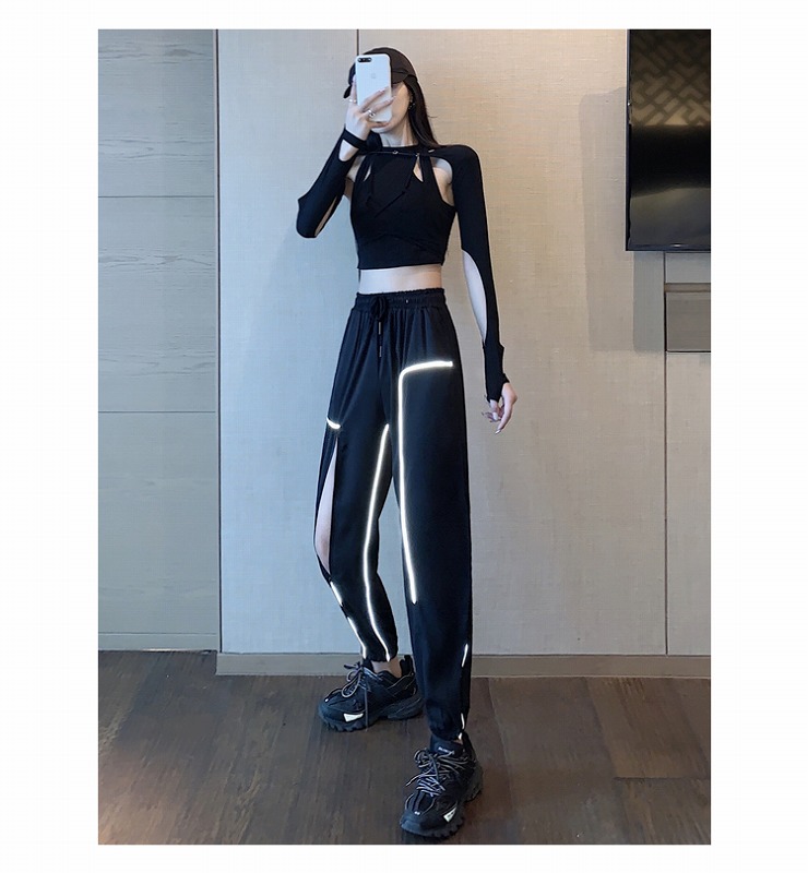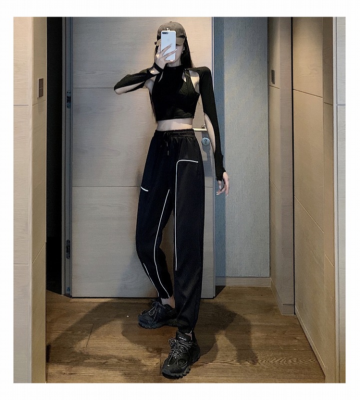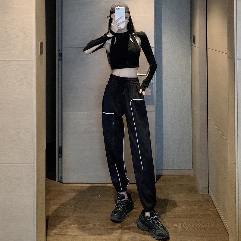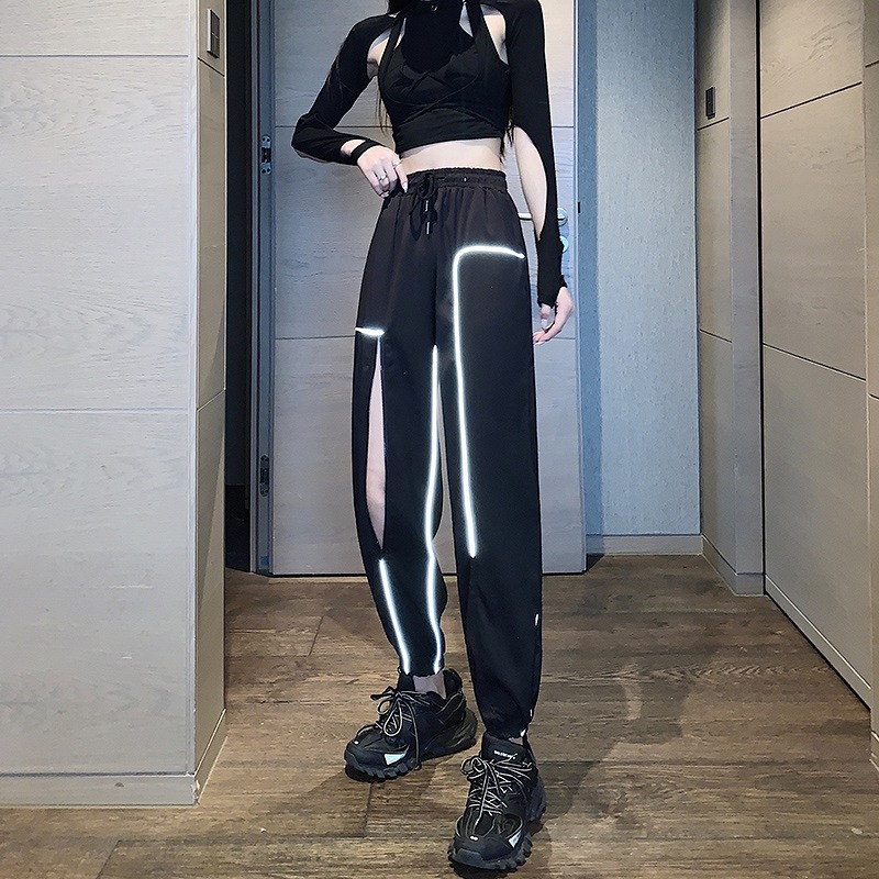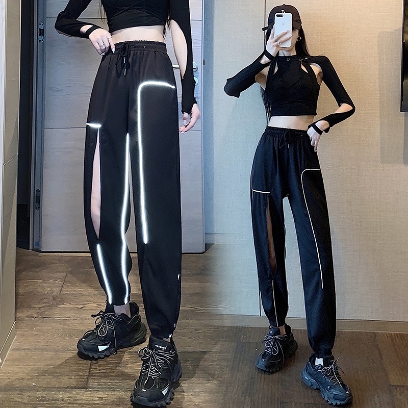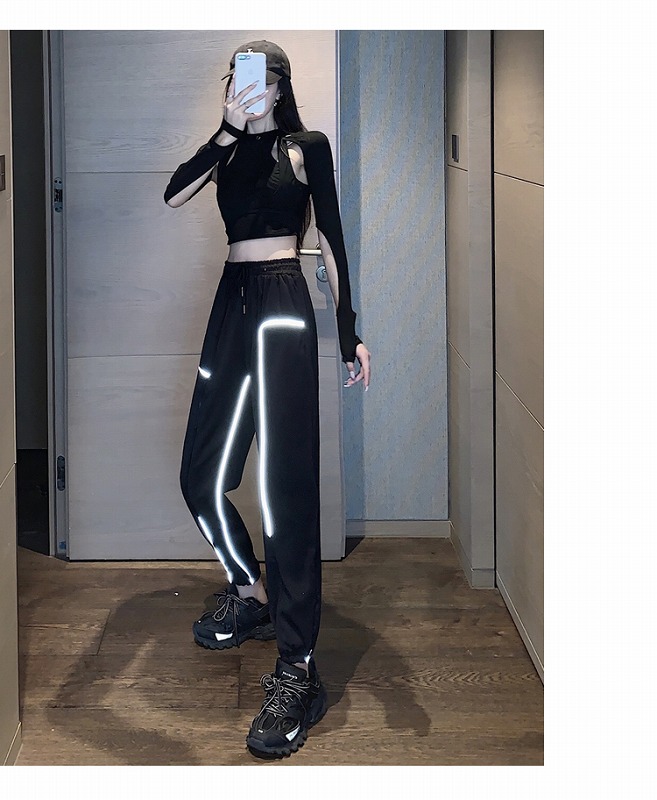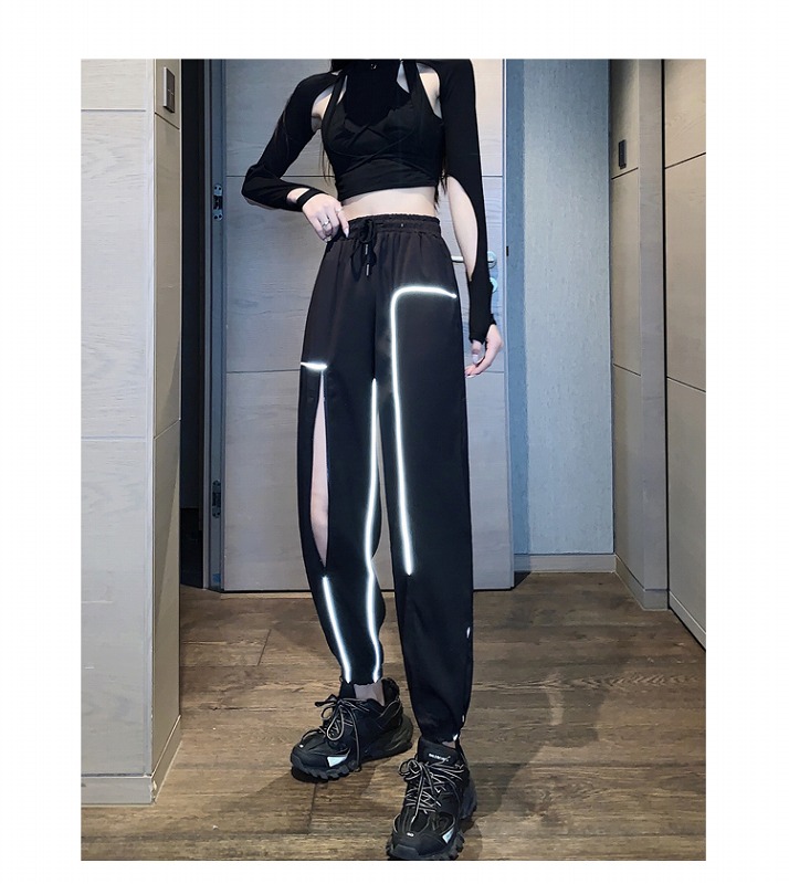 パンツ ズボン 切り替え 体型カバー ヴィンテージ風 レトロ調 HIPHOP ヒップホップ 原宿系ファッション 韓国風 ダンス 衣装 ダンサー ヒップホップ HIPHOP 個性 奇抜 かわいい 青文字
