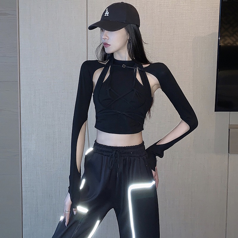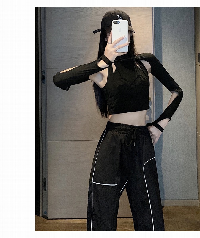 Tシャツ カットソー 五分 七分 半袖 ショート丈 切り替え スリム フェイク レイヤード 重ね着風 原宿系ファッション 韓国風ダンス 衣装 ヒップホップ HIPHOP 個性 奇抜 かわいい 青文字系