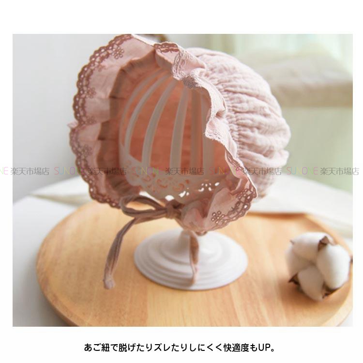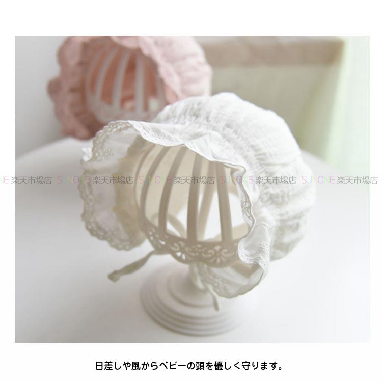 ベビー 帽子 ハット レース あご紐 つば広 お出かけ 日焼け対策 暑さ対策 お散歩 外遊び お宮参り ボンネット キュート 日よけ 風よけ 通気性 赤ちゃん 新生児