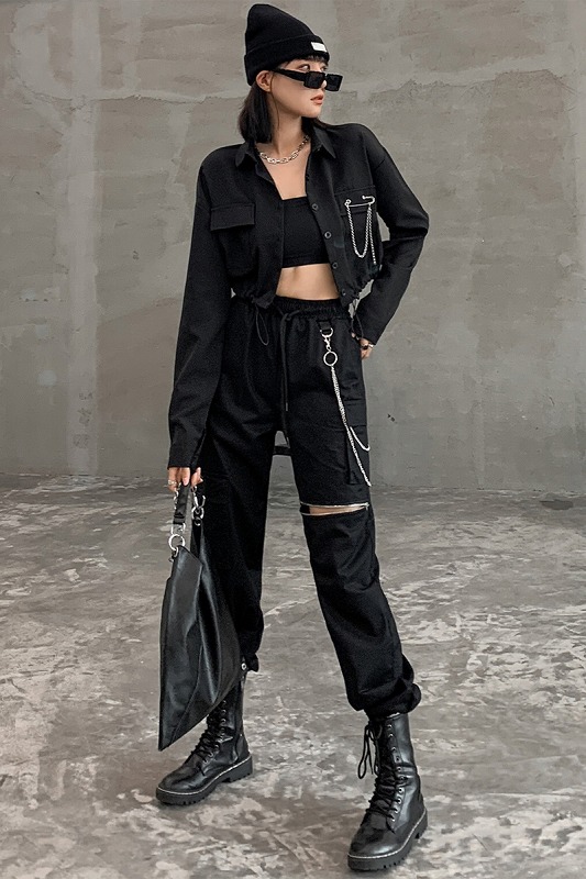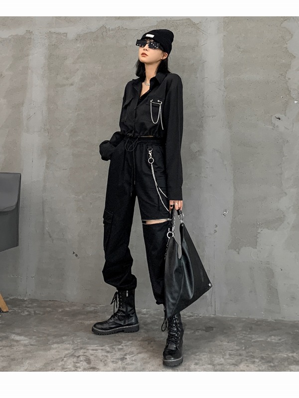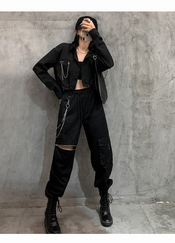 ブラウス シャツ 長袖 ショート丈 切
