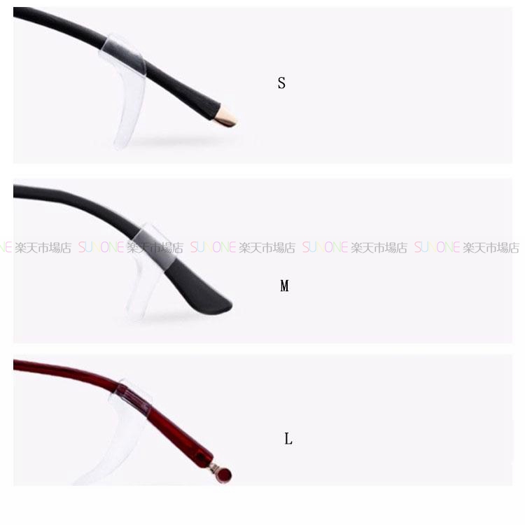 サイズ S,M,L詳細 S:3mm-6mmのメガネフレームに適用する。 M:4mm-12mmのメガネフレームに適用する。 L:4mm-12mmのメガネフレームに適用する。