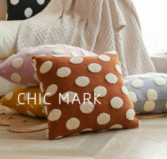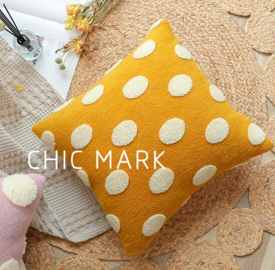 クッション5色クッションカバーカバーベージュ黒ブラックブラウンピンクイエローグレードットもこもこ大きい大きめ45cm×45cm北欧おしゃれ可愛いデザイン洗える四角正方形韓国雑貨インテリア北欧ふわふわレ