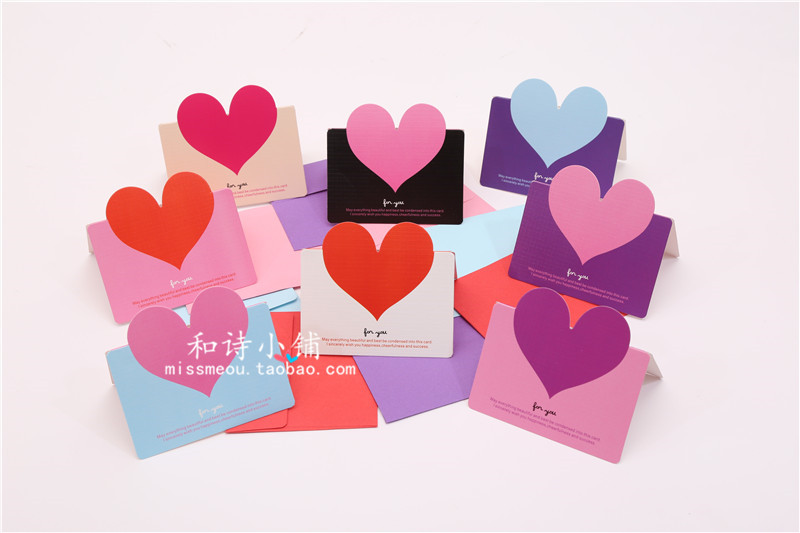 封筒付き10枚セット7色ハートカード手