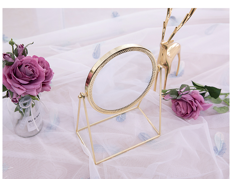 スタンドミラー鏡ミラーデザイン雑貨インテリアおしゃれかわいい可愛い卓上丸上大きい 韓国韓国雑貨木化粧鏡卓上鏡コンパクトゴールドアンティークキラキラ
