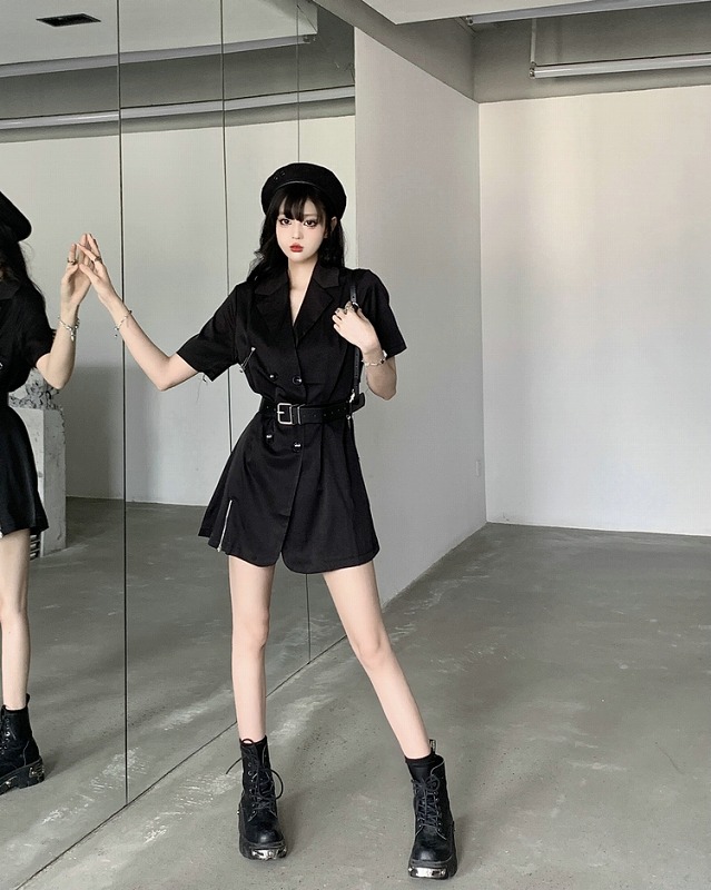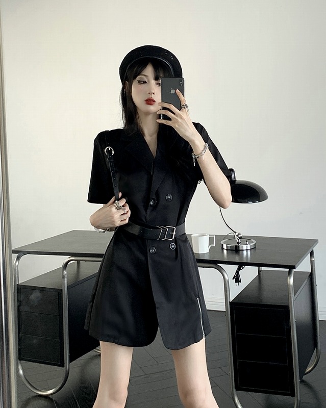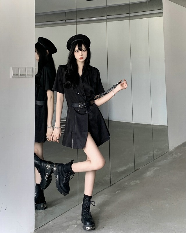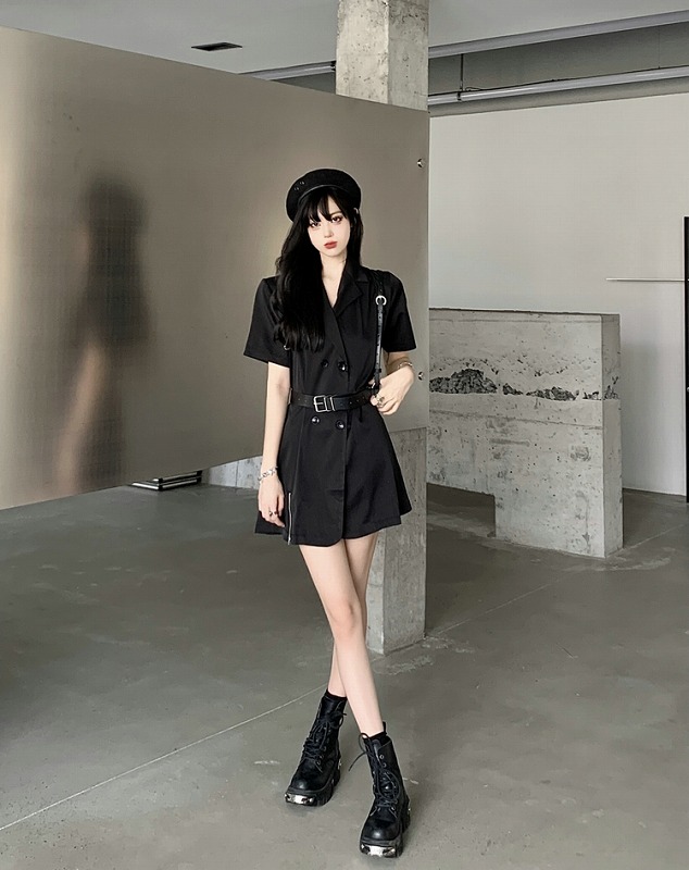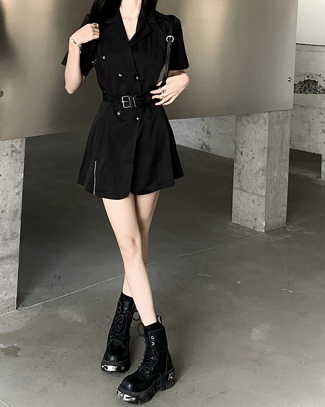 ワンピ 半袖 切り替え スリム 無地