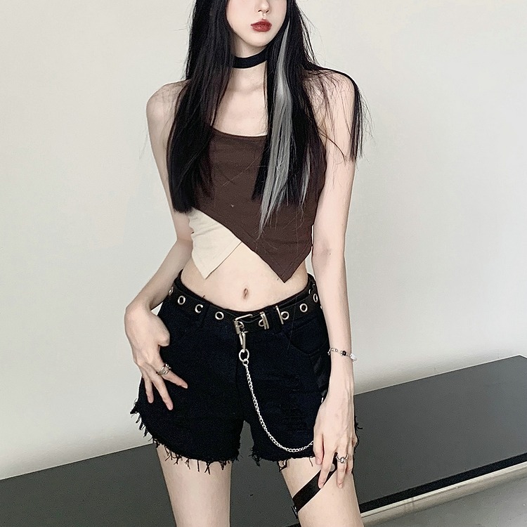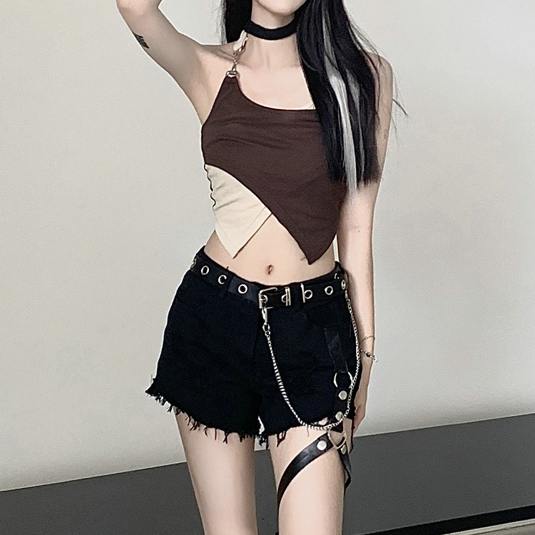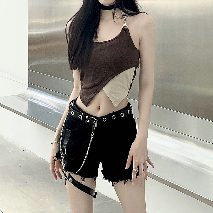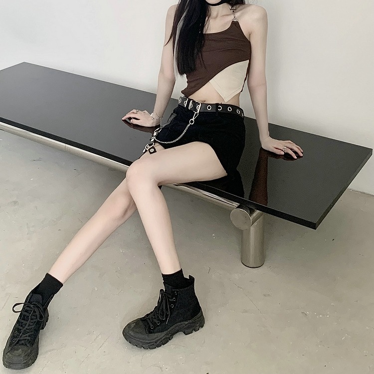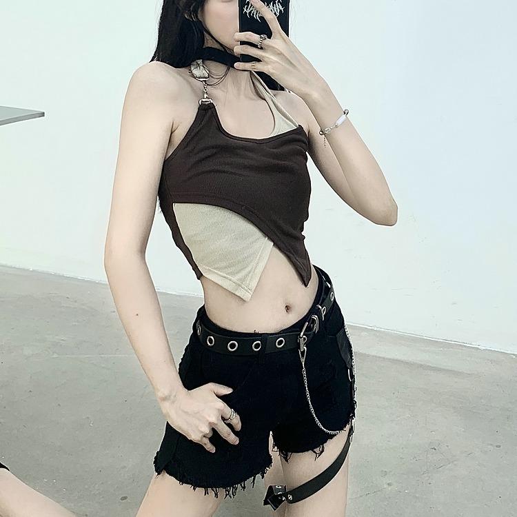 Tシャツ カットソー 長袖 ショート丈 切り替え スリム 無地 HIPHOP ヒップホップ 原宿系ファッション 韓国風ダンス 衣装 ヒップホップ HIPHOP 個性 奇抜 かわいい 青文字系 トップス