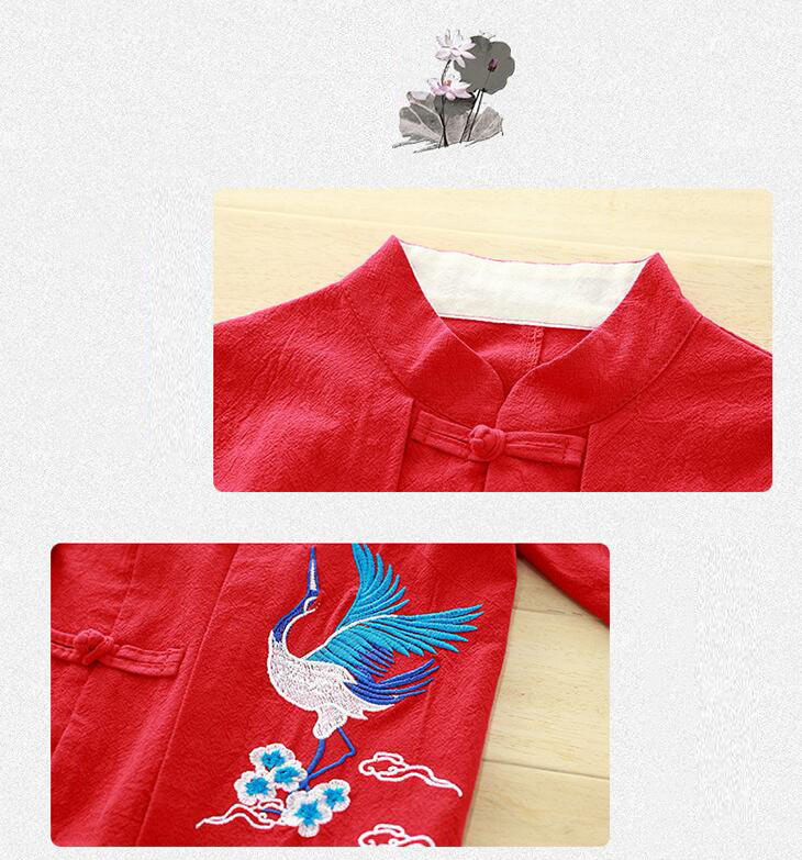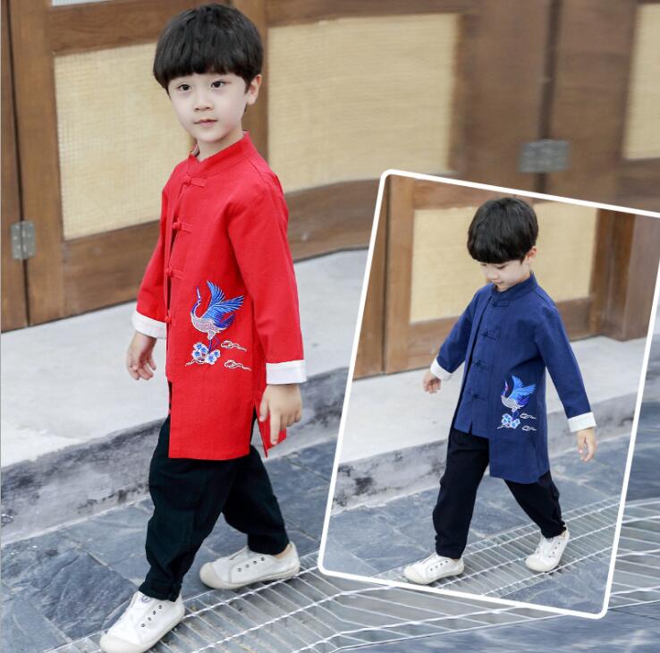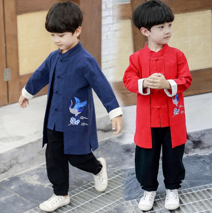 チャイナ 子供服 2点セット表演服 カンフー 太極拳 服 ウェア 男の子 演武服 演武服 チャイナ 太極ウェア 長袖 長拳 伝統拳 気功 前開き 鶴 学園祭