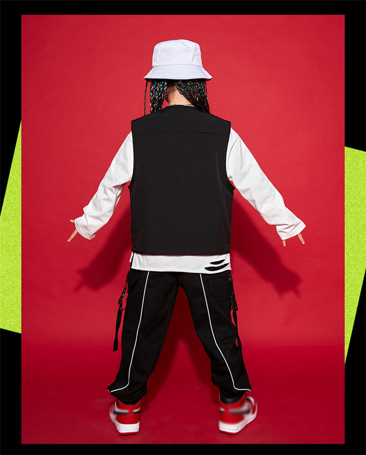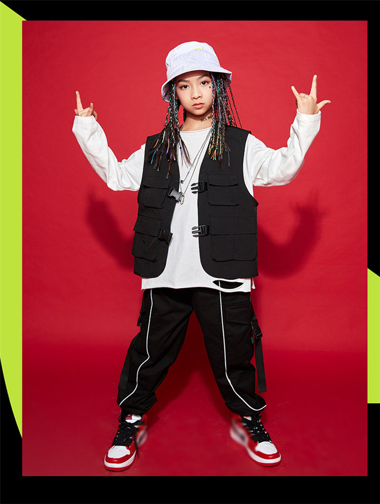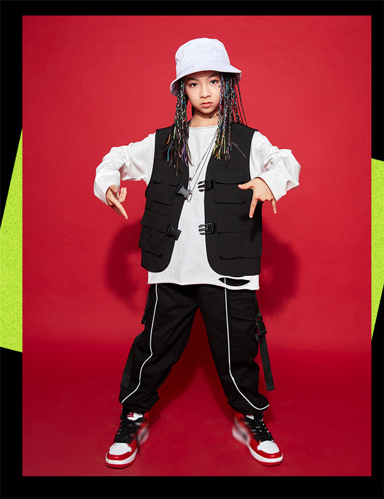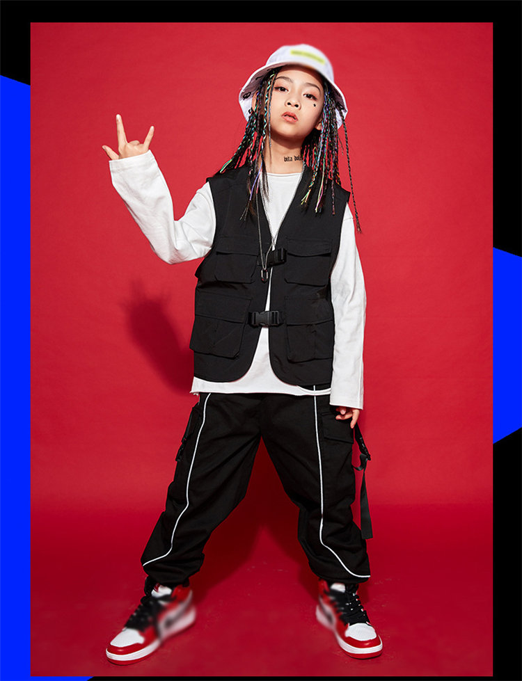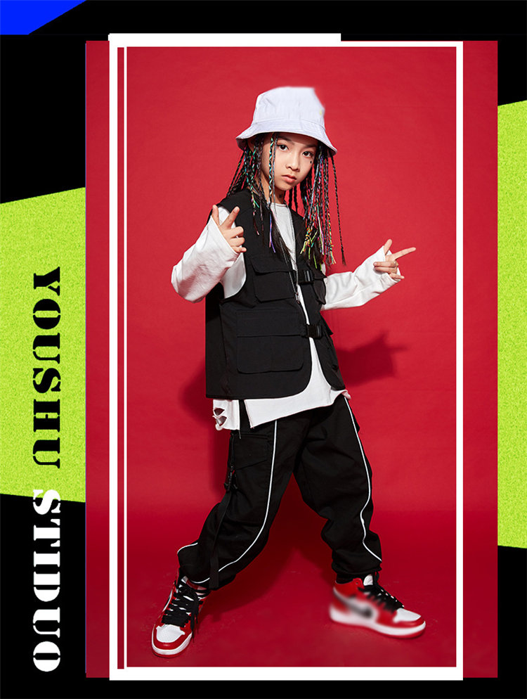 ヒップホップ ダンス 衣装 子供 ジュニア 男の子 女の子 ベスト+ロングパンツ おしゃれ ファッション HIPHOP ダンスウエア ジャズダンス 練習着 ステージ衣装 カジュアル 普段着 ジャズ