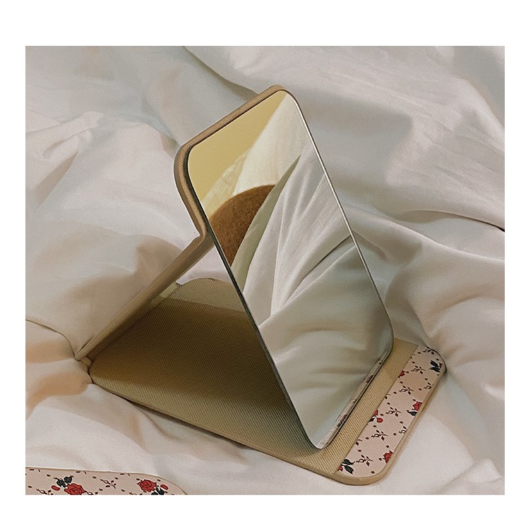ローズ折りたたみミラー2サイズ鏡手鏡持ち運びポーチ韓国おしゃれ可愛いコンパクト薔薇花柄チェック大きい大きめ小さい小さめ化粧鏡コンパクト長方形携帯レトロ薄型角度ハンドミラーインテリア