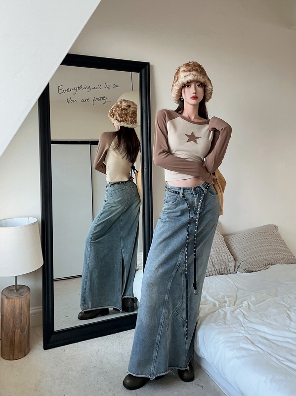 デニムパンツ ビジュー付き