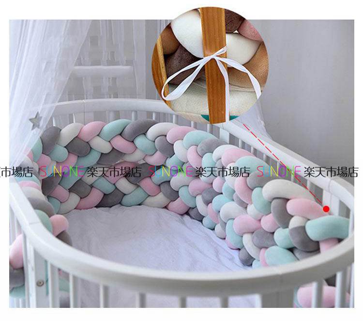 落下防止 寝返り防止 クッション ベッドガード 寝返り防止クッション 3M 4本編み クッション サイドガード ノットクッション ベビー ベッドガード クッション ベッドサイド サイドガード