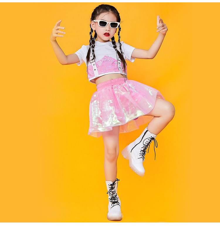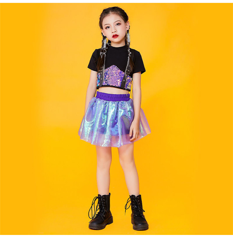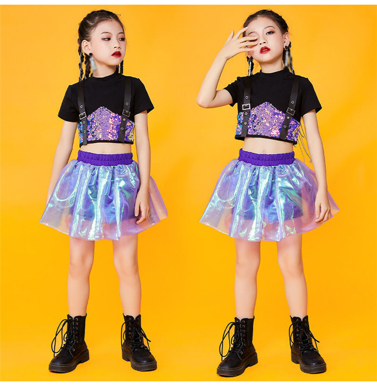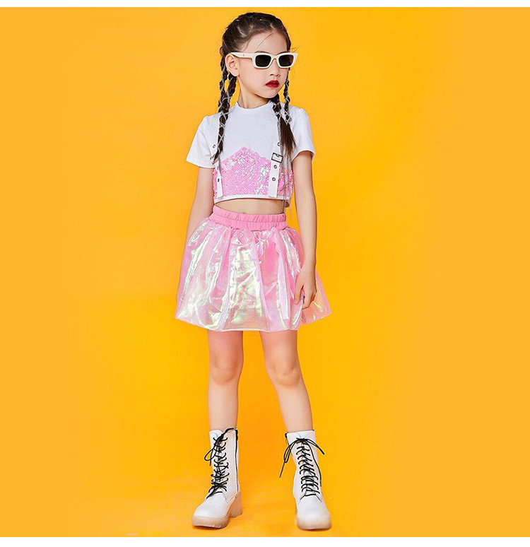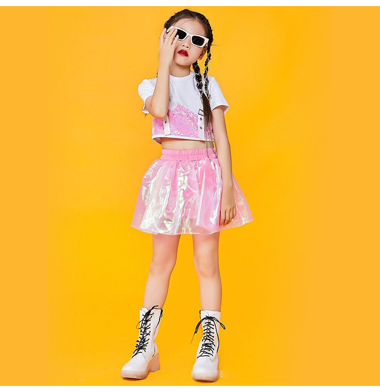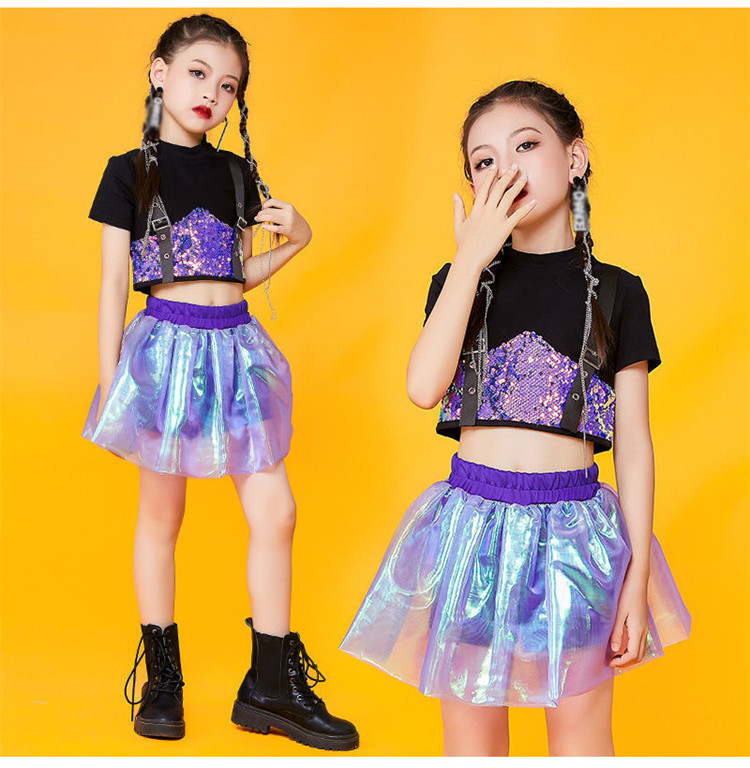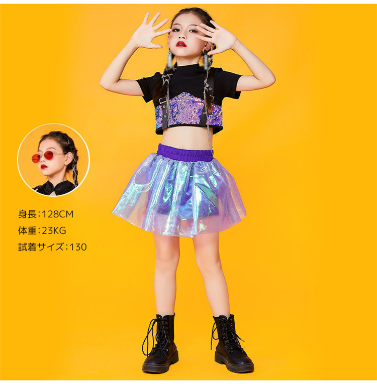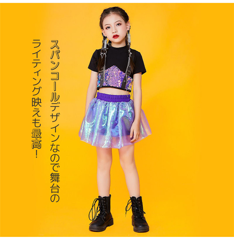 キッズ ダンス衣装 チアガール ダンス衣装 セットアップ ガールズ チアダンス 女の子 ジャズダンス キラキラ スパンコール ヒップホップ トップス スカート 応援団 団体服 演出服